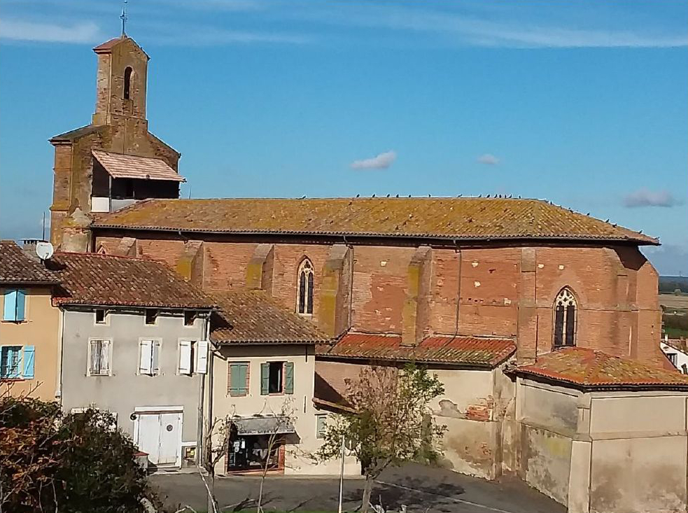 L’édifice actuel de style gothique méridional remontant au XVIe siècle est construit entièrement en brique. Après l’effondrement en 1814 de son ancien clocher toulousain, haut de 49 mètres, qui provoqua la mort tragique d’un habitant du village, le clocher mur actuel fut construit en 1830.