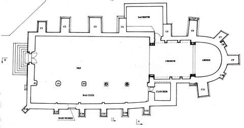 Les tailloirs à bec des dernières travées du bas-côté, en forte saillie vers le vaisseau central, témoignent d’un projet de voûtement qui n’a jamais été réalisé. Ce vaisseau est aujourd’hui couvert par un plafond posé en 1913. Dans les combles se trouve une charpente moderne à fermes et à pannes (XVIIIe s.), pour laquelle les entraits d’une charpente médiévale ont été réutilisés. L’ensemble a été consolidé vers 1880, mais les pièces ajoutées pour cette opération surchargent et désorganisent les maçonneries, principalement dans le bas-côté.