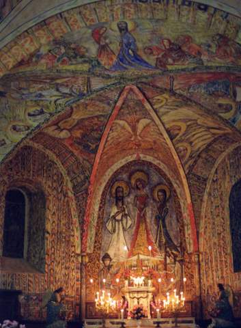 Située sur les coteaux du Lauragais entre Lama et Caraman, la chapelle Sainte-Apollonie dépend de la commune d’Aurin en Haute-Garonne qui compte moins de deux cents âmes. L’existence d’un lieu de culte à cet emplacement est mentionnée pour la première fois dans les dépositions faites par quelques habitants relatant incendies et pillages de reliques, de croix et d’ornements perpétrés en 1560 par les Huguenots dans les paroisses rurales du diocèse de Toulouse. On dispose d’un procès-verbal de visite daté de 1596. La chapelle connaît par la suite plusieurs campagnes de remaniement : le porche et la sacristie sont construits à la fin du X VIIIème s. ; un décor peint est réalisé au siècle suivant, et plus récemment la partie haute du clocher est rebâtie après l’effondrement qui eue lieu dans les années 1960. Longue de vingt-six mètres, la chapelle présence aujourd’hui un clocher-mur d’une vingtaine de mètres de haut percé de trois grandes baies où sont suspendues quatre cloches. Le peintre François Bernardi y reprit en 1952 le décor intérieur de la nef, des chapelles et du chœur. Il était déjà intervenu dans les églises voisines de Tarabel, Montgiscard et Préserville. Il fut aidé par le peintre Carlos Pradal. Dans la chapelle latérale ouvrant sur la nef et dédiée à sainte Appolonie, une statue de la sainte est présentée avec à ses pieds un récipient rempli d’huile : de nombreuses mères y viennent encore avec leurs jeunes enfants pour les recommander à l’attention de la sainte, souvent invoquée pour guérir le mal de dent des nourrissons. Une première tranche de travaux a concerné la restauration de la charpente et de la couverture ainsi que le drainage du mur nord. La nouvelle tranche de travaux prévue concerne la restauration des enduits extérieurs. Pour ces travaux la Sauvegarde de l’Arc français a accordé une subvention de 50 000 F en 1995.