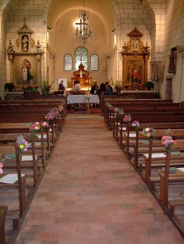 Les éléments les plus anciens de l’église datent des XIeet XIIes. , comme l’attestent certains contreforts extérieurs ainsi que l’appareil d’une partie de la nef. Cependant, l’essentiel de la construction a été remanié à partir de la deuxième moitié du XVes. jusqu’au XVIIesiècle. De nouvelles ouvertures ont été pratiquées dans la nef et les fenêtres anciennes ont été agrandies ; les murs gouttereaux et la charpente apparente supportant une voûte lambrisséeont été refaits.