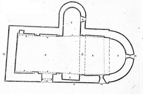 Des vases dits « acoustiques » sont disposés dans la voûte. Selon d’autres hypothèses, ils pouvaient servir à drainer l’humidité de la voûte ou être utilisés pour la suspension de lampes à l’aide d’un croisillon retenu par le col le plus étroit. Les murs sont en moellons et la toiture recouverte de lauzes.