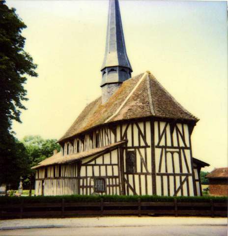 L’édifice, du début du XVIIIe s., se compose d’une nef de 17 m de haut, à collatéraux, terminée par une abside à trois pans. L’ensemble est couvert d’un plafond en charpente. Les quatre travées de la nef sont éclairées, au nord et au sud, par quatre fenêtres hautes rectangulaires. Dans le chœur, seuls les deux pans latéraux sont percés de baies. Une flèche en charpente couverte d’ardoises domine la deuxième travée de la nef de ses 26 mètres. La large couverture en tuiles canal des bas-côtés enserre la nef et vient couvrir le porche ouest. L’ossature en pans de bois de la nef est faite de sablières sur lesquelles reposent des poteaux à écharpes montant de fond délimitant les travées. Sa partie haute est rythmée par des croix de Saint-André. Celle des bas-côtés est composée de poteaux rapprochés. La structure de cet édifice a été relevée, en 1944-1945, par le Centre de recherches sur les Monuments historiques.