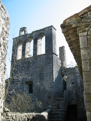 Le clocher-peigne, élevé au XVIIesiècle, était garni jusqu’en 1895 de « trois bonnes cloches » qui seront à cette date placées dans la nouvelle église, l’évêque de Viviers trouvant l’église romane « très petite, très irrégulière, d’accès difficile et peu agréable ». Mais la décision de désaffectation de l’ancienne église, relevant de l’évêque, ne sera jamais prise. Quant à l’abside, elle s’inscrit dans une tour des remparts de la petite cité.