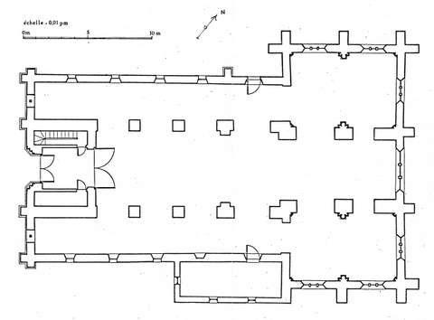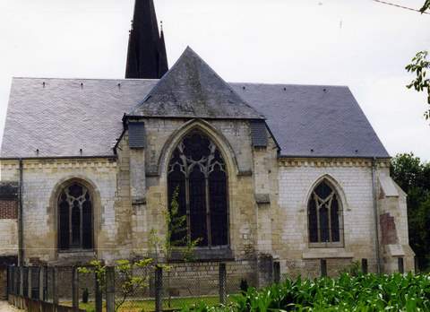 La nef, la partie la plus ancienne de l’église, comprend quatre travées avec des collatéraux ; elle est précédée d’un clocher-porche dont le mur-pignon a été restauré au XIXe s. Au XVIe s., le volume de l’édifice s’est considérablement accru par la construction d’un imposant massif oriental, de plan rectangulaire, comptant deux travées avec collatéraux. La partie centrale de l’important chevet fait une légère saillie à l’extérieur. Elle est percée d’ une grande fenêtre d’axe encadrée de part et d’autre par une baie de taille moindre mais de même style, conférant au chevet une élégance indéniable. Les murs nord et sud du chœur possèdent également des baies similaires. Mais ces ouvertures ont fragilisé des murs en grande partie évidés et les reprises en brigue effectuées au XIXe s. sur divers contreforts témoignent des difficultés rencontrées. A l’intérieur, un vitrail daté de 1536 et les stalles du chœur du XVIIIe s. ont été inscrit s à l’inventaire supplémentaire.