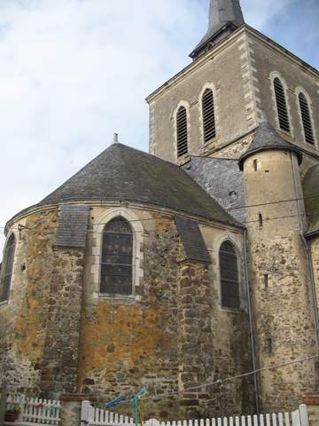 Le plan suggère l’histoire de cet édifice. La modeste église, de fondation romane, mais dont les éléments les plus anciens subsistants de nos jours évoquent davantage une construction des XIII-XIVe s., a pu, au XVIIIe s., connaître des travaux. Le fonds de la fabrique aux Archives départementales de la Sarthe[1] témoigne d’une paroisse gérant son temporel. Cependant l’utilisation sous la Révolution de l’église, désormais désaffectée, entraîne des dégradations importantes : elle sert alors de point d’appui aux troupes républicaines dans un pays chouan. Aussi une restauration globale s’impose-t-elle au début du XIXe siècle.