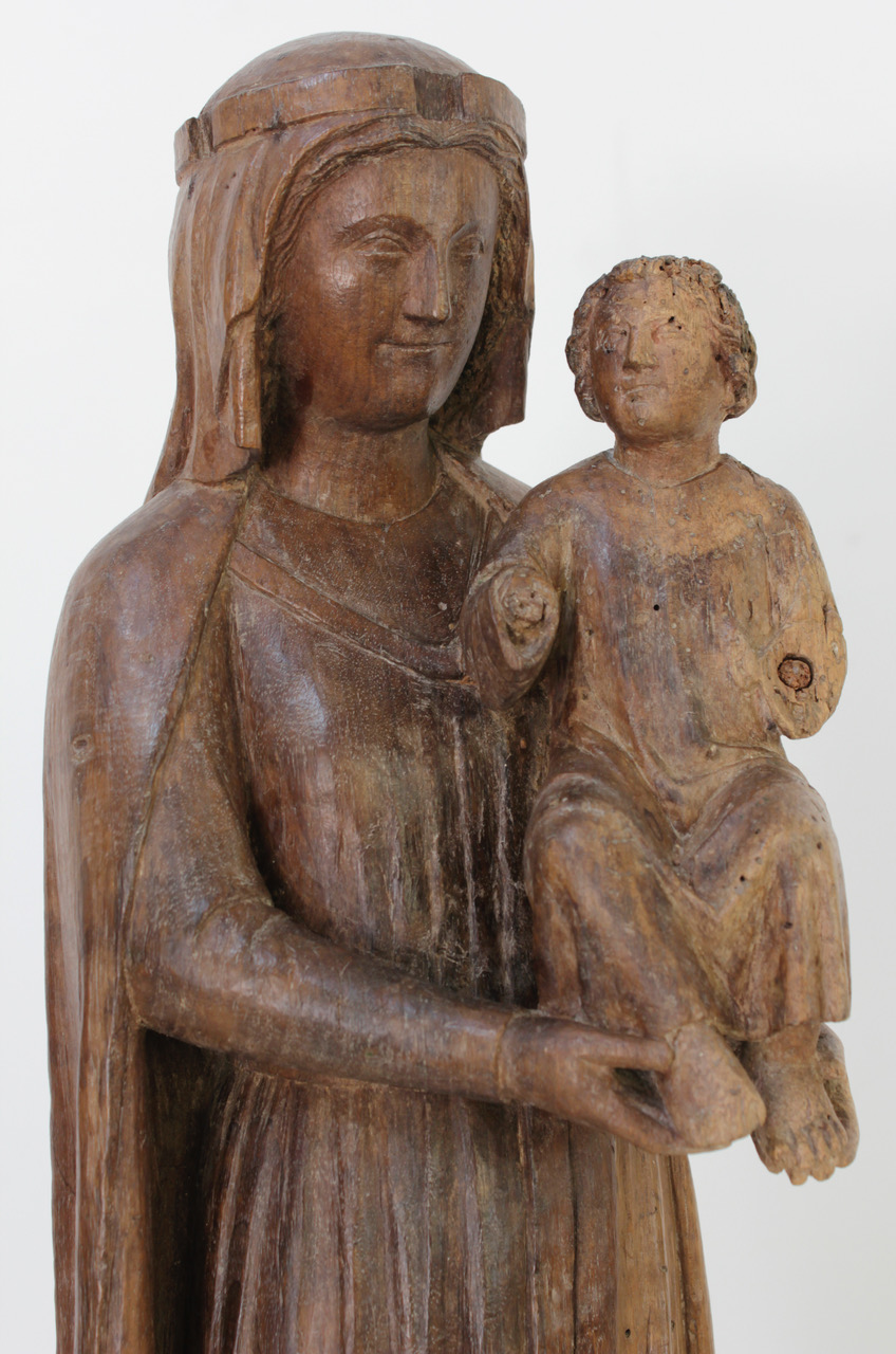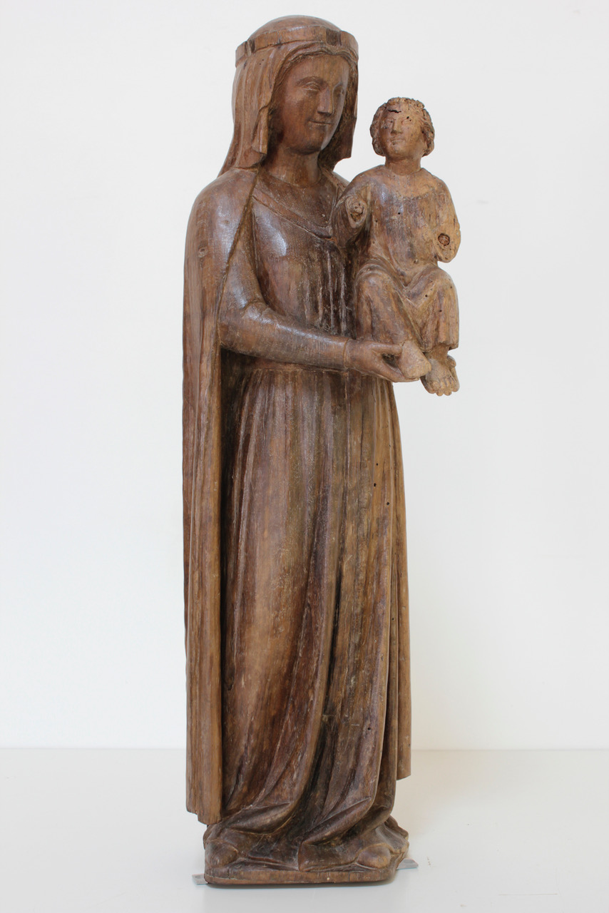 Parmi les trésors conservés dans la chapelle, la Vierge à l’Enfant, une statue en bois datant du XIVe siècle, occupe une place particulière. Classée monument historique en 1948, cette sculpture gothique représente la Vierge portant l’Enfant Jésus dans une attitude empreinte de douceur et de solennité. Finement travaillée, elle témoigne du savoir-faire des artistes médiévaux et de la richesse artistique de l’époque. Cependant, les siècles avaient laissé leur empreinte sur cette œuvre précieuse, menaçant son intégrité et nécessitant une intervention spécialisée pour la préserver.