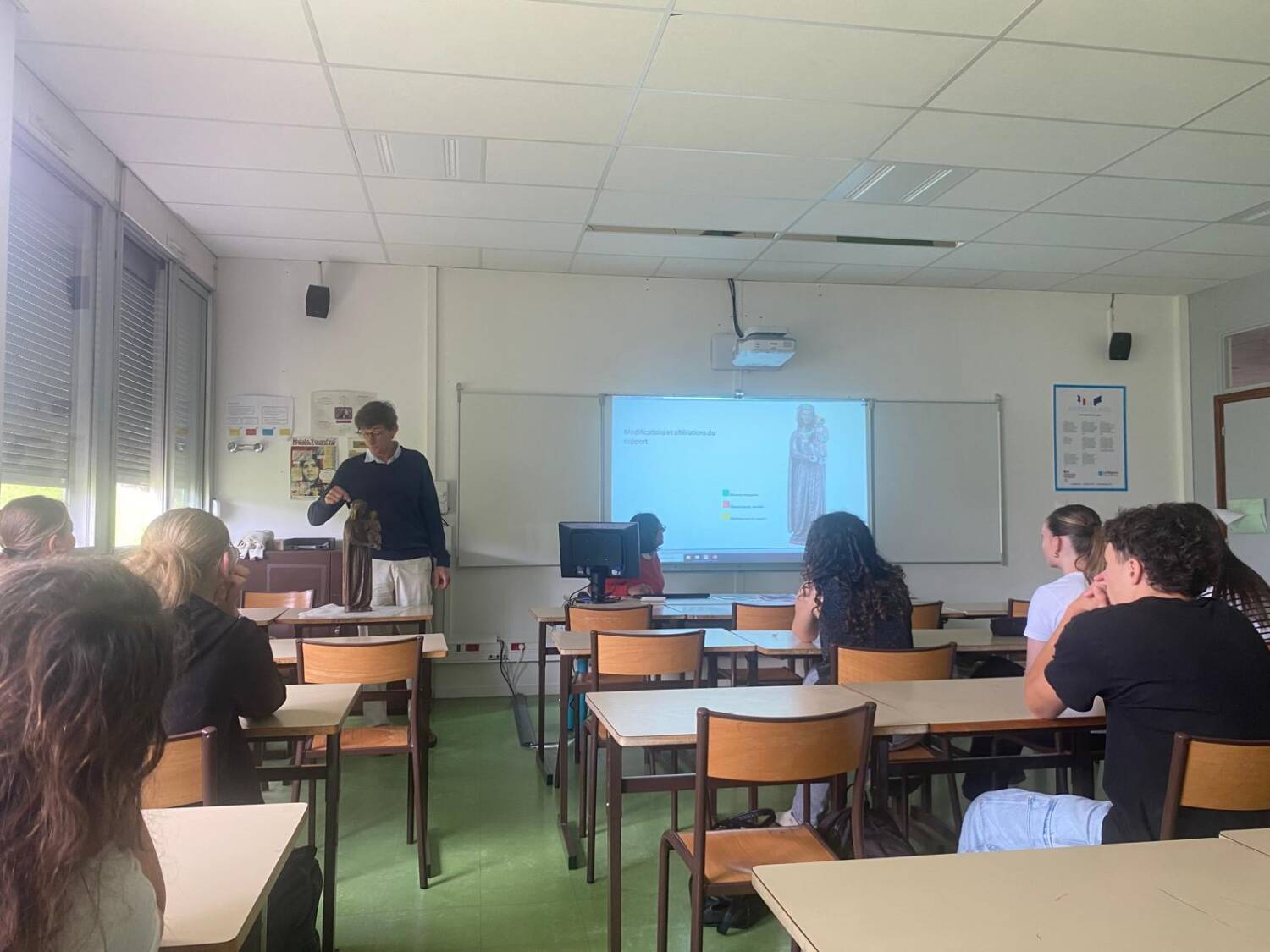 Afin de sensibiliser les jeunes générations à l’importance du patrimoine, une rencontre entre les lycéens et le restaurateur a eu lieu en juin 2025, en classe. Lors de cet événement, les élèves ont eu l’opportunité d’échanger avec le restaurateur et d’observer l’évolution de la statue grâce à une présentation avant/après, offrant ainsi une immersion concrète dans l’univers de la restauration d’art.