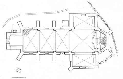 Il ne reste plus rien de l’église romane sinon l’implantation générale. Il en va de même pour l’époque gothique si ce n’est que la base du clocher offre un portail en tiers-point de cette époque. La partie inférieure du clocher est en effet la seule partie de l’église qui échappa à la reconstruction quasi générale de l’édifice au XVIIIe siècle.