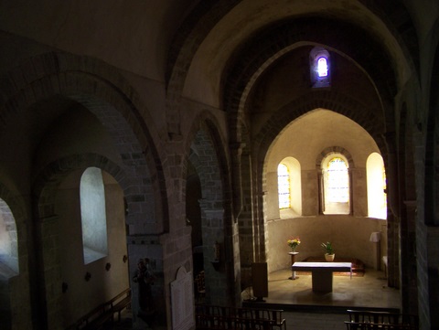 L’intérieur présente la même simplicité que l’extérieur. La nef centrale est couverte de voûtes en berceaux en plein cintre séparés par des arcs doubleaux, alors que les bas-côtés ont reçu des berceaux continus. La nef est dépourvue d’éclairage direct, mais les bas-côtés et les absides sont bien éclairés par des fenêtres en plein cintre régulièrement distribuées.