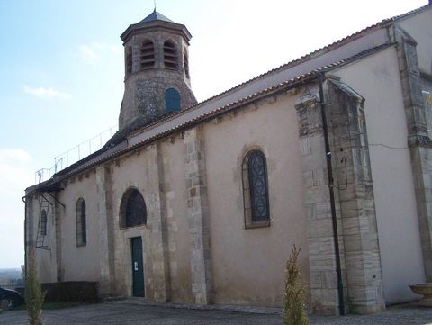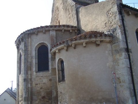 L’extérieur, très simple, est aussi très homogène. Les murs de calcaire local très clair sont enduits, ne laissant visibles que les contreforts, les encadrements des baies et le clocher. Le raccord entre la partie romane et la travée du XIXe s., soigneusement exécuté, est presque imperceptible.
