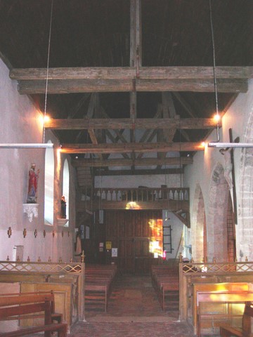 De plan rectangulaire, l’édifice se compose d’un grand vaisseau plafonné qui s’ouvre, par quatre grandes arcades en arc brisé, sur un unique collatéral, au nord ; celui-ci était autrefois couvert d’un demi-berceau lambrissé, dont les planches ont été remplacées par des frisettes de fabrication industrielle. La nef et le chœur, de même longueur, sont séparés par de grandes arcades au profil soigné, notamment dans le chœur, où l’arc porte à la clef un blason. Les profils adoptés, tant pour les arcs que pour les piliers (bases, en particulier), militent en faveur d’une datation d’ensemble de la fin du XVe ou du début, voire de la première moitié du XVIe siècle. Le chœur se termine par un chevet plat, initialement percé d’un triplet dont la trace est encore visible ; beaucoup plus ancienne, cette partie pourrait remonter à la fin du XIIe ou au XIIIe siècle.