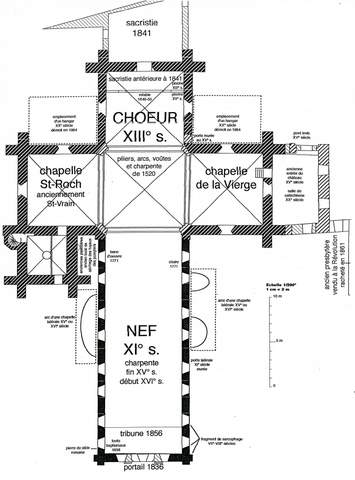 Pour la réfection des charpentes et toitures de la nef et du transept, la Sauvegarde de l’Art français a accordé en 2005 une aide de 20 000 €.