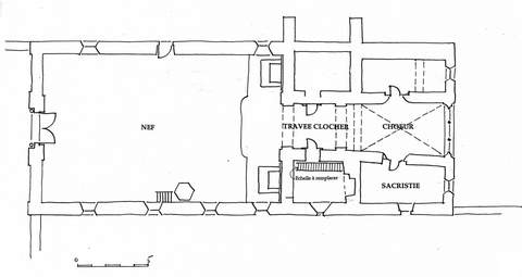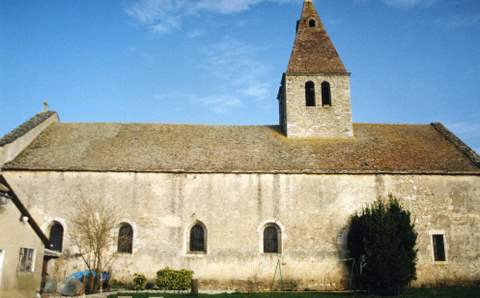 Situé sur la basse vallée de la Grosne, à quelques kilomètres seulement du confluent de cette rivière avec la Saône, le village de Beaumont est à 14 km à vol d’oiseau au sud de la ville de Chalon-sur-Saône. Il était le siège d’un doyenné de l’abbaye de Cluny, attesté vers 1100 et qui disparaît des listes des dépendances de la célèbre abbaye bourguignonne avant 1321. Cette possession clunisienne, à défaut d’étude approfondie sur le terrain, n’est repérable que par l’église actuelle, cependant l’urbanisme en garde le souvenir, puisque l’édifice est encore sur trois côtés inséré dans des propriétés. La proximité de ce doyenné avec les terres de la très importante abbaye cistercienne de la Ferté-sµr-Grosne, fondée en 1113 par saint Bernard, est vraisemblablement à l’origine de l’abandon des intérêts clunisiens à Beaumont; il est probable que Cluny ait rétrocédé le domaine pour éviter toute querelle, à l’instar de celle qui s’était produite en 1150 entre une abbaye de son obédience, Gigny, et celle du Miroir, dépendance de Cîteaux. L’église, placée sous le vocable de Notre-Dame, remonte, pour ses parties les plus anciennes, à la fin du XIe siècle. Elle est composée d’un important volume unique couvert d’un comble à deux pans. Un puissant clocher émerge de la toiture en tuile plate. Les volumes intérieurs sont forts différents de l’extérieur : si la nef est une grande salle unique sans collatéraux, utilisant toute la largeur du volume, le chevet, quant à lui, est subdivisé en un chœur à chevet plat et en deux chapelles très étroites. Le clocher est implanté sur un massif puissant précédant le chœur qui s’ouvre sur la nef par un arc en plein cintre sans envergure. La façade de la nef a conservé son ordonnance romane. Renforcée latéralement par deux pilastres plats, ou lésènes, son centre est occupé par une légère saillie rectangulaire percée d’ un portail et par une baie haute en plein cintre très étroite. Le portail, dans le plus pur style clunisien, est orné d’une archivolte à palmettes délicatement ouvragée retombant latéralement sur deux colonnettes à chapiteaux historiés. Dépourvu de tympan, il s’ouvre sous un arc légèrement sur baissé. Deux médaillons sculptés de figures, partiellement dégagés, ornent les écoinçons sous une corniche à modillons malheureusement totalement bûchée. La composition très simple de la façade n’en est pas moins raffinée; seule l’ouverture d’un oculus au XVIe s. en est venue perturber l’équilibre. La nef, dont les murs gouttereaux romans ont été légèrement abaissés, n’a sans doute jamais été voûtée ; elle est couverte par un plafond lambrissé aux retombées en voûte d’arc de cloître; ses fenêtres classiques, placées très bas, sont sans doute contemporaines du plafond. Le clocher actuel, datable du XVIe s. d’après son architecture et celle des arcs de la croisée qui le soutiennent, est de plan carré. Sur chaque face s’ouvrent deux baies élancées en plein cintre dont les arcs retombent sur des tailloirs saillants. La composition est sévère : seule la flèche pyramidale en brique, maintenant réenduite, contribue à son élancement ; la naissance des plans inclinés est soulignée par une puissante corniche en doucine et quatre petites lucarnes, placées très haut sur ses pans, répondent sagement aux baies du corps du clocher. Le chœur a été réaménagé au tout début du XVe s., comme l’atteste le remplage de la grande baie axiale. De plan barlong, il est voûté en quatre compartiments portés par des nervures au profil soigné. Les culs-de lampe recevant les retombées sont sculptés des symboles des quatre évangélistes. Sur une clé de voûte imposante figure le Christ entouré de quatre anges sonnant de la trompette; sous le globe terrestre servant de repose-pieds au Christ, quatre petits personnages, dont un est mitré, semblent être les témoins de la scène. Le réaménagement du chœur n’a cependant pas détruit la disposition tripartite du chevet. Les deux petites chapelles latérales, maintenant désaffectées, bien que profondément remaniées au XVe s. ont conservé des dispositions romanes. Celle du sud montre sur son arc triomphal des peintures murales romanes apparemment d’excellente facture : l’écaillage du badigeon qui les recouvre en laisse entrevoir plusieurs parties, mais leur état nécessiterait une intervention rapide de consolidation. La Sauvegarde de l’Art français a accordé en 1998 une aide de 86 000 F pour la réfection du clocher et de la façade est de l’église.