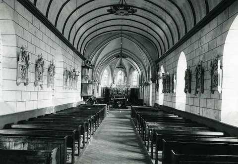 Le mobilier conservé dans l’église comporte des pièces intéressantes : statues de bois polychrome des xvie, xviie et xviiie s. et de beaux fonts baptismaux de la deuxième moitié du xviiie s.