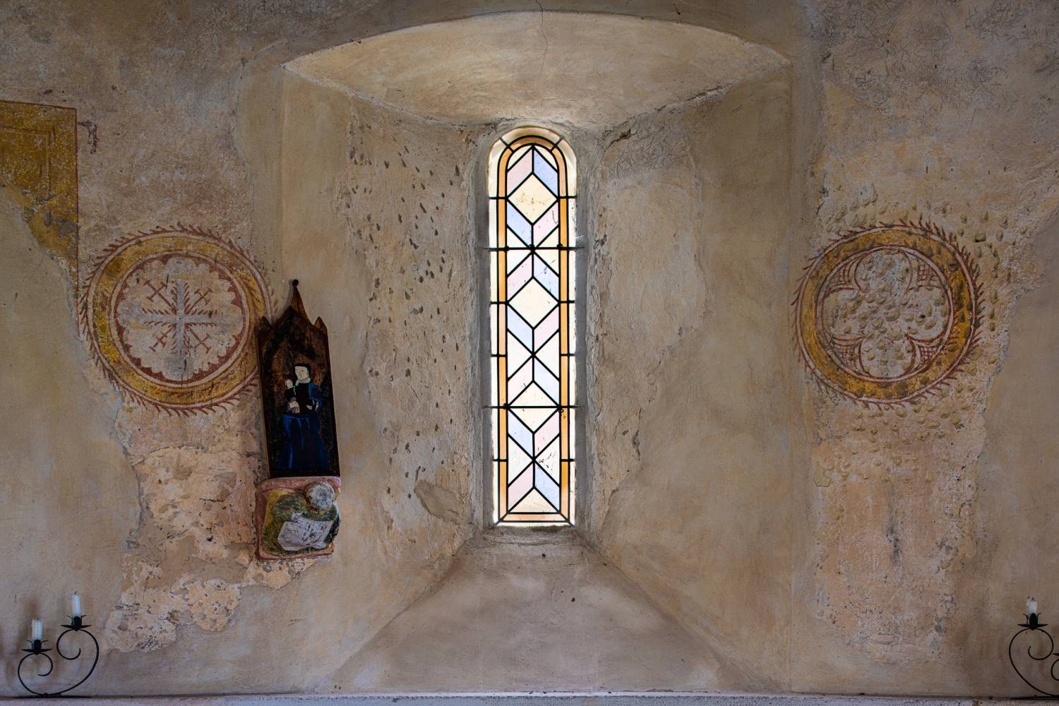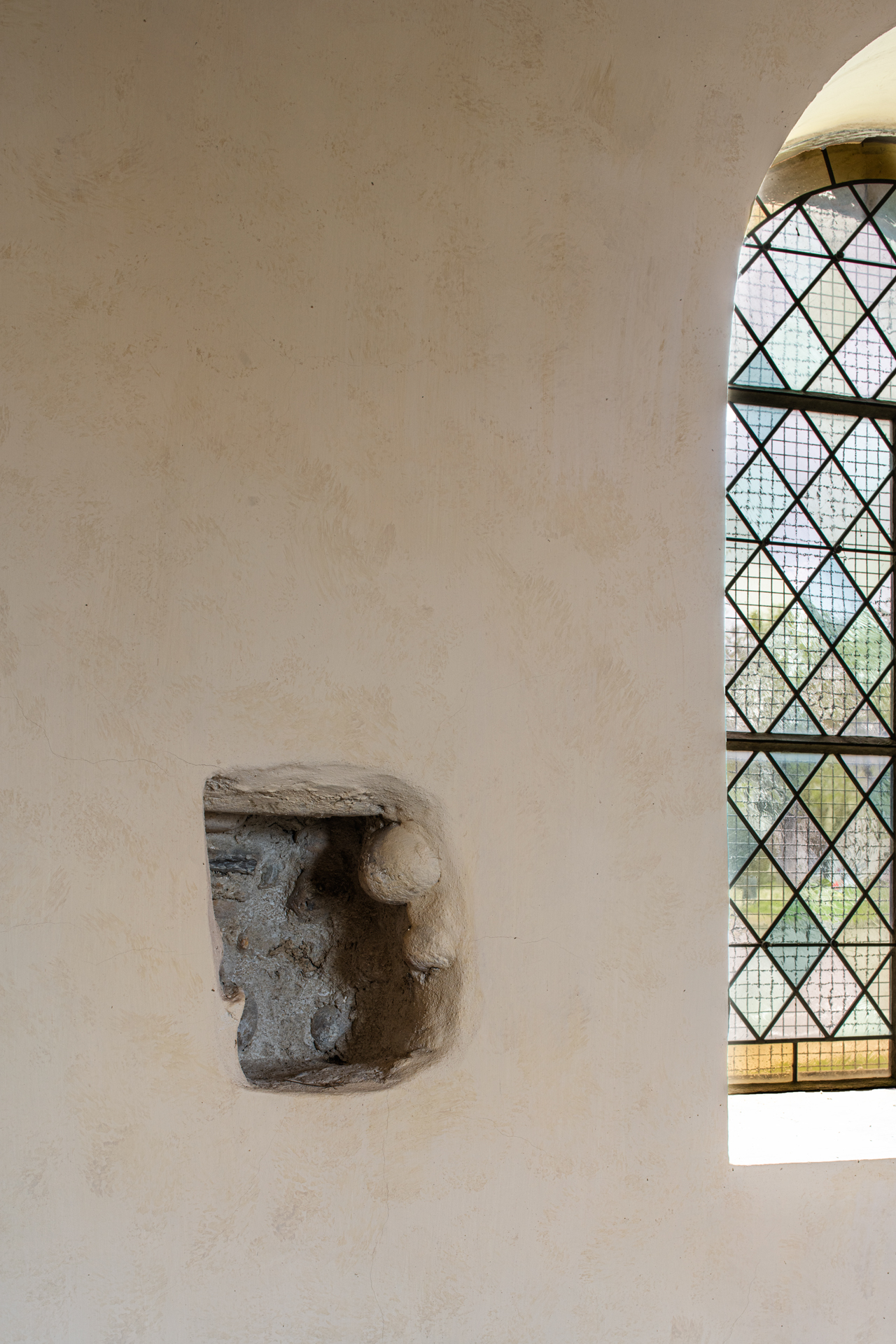 Une statue de saint André, en pierre, a été découverte dans la fenêtre axiale lors de la réouverture de celle-ci ; un panneau de bois représentant le même saint provient peut-être d’un petit retable peint ou d’un devant d’autel ; une petite Vierge à !’Enfant assise en bois polychrome (XIVe-XVe siècle ?) a été volée il y a quelques années.