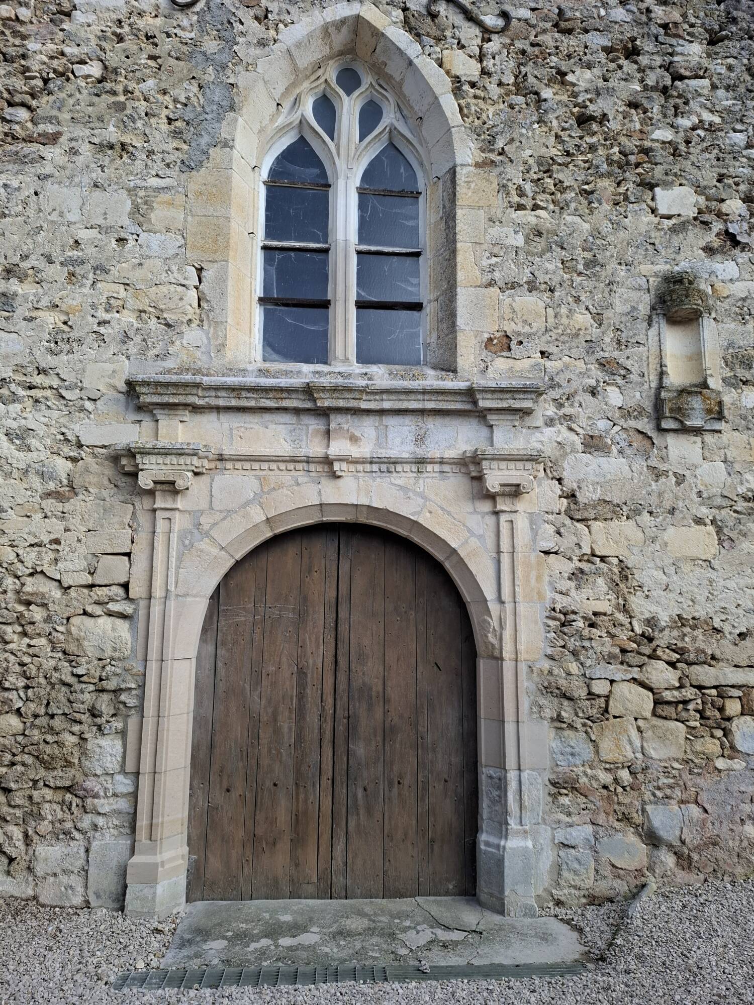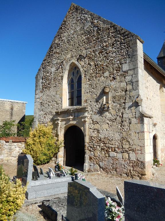 L’église était celle d’un ancien prieuré établi au XIIIe siècle qui s’élevait à proximité et dont certains bâtiments voisins gardent la trace. Les arcades prises dans le mur sud, associées à la porte en arc à pans brisés sur le même côté, ainsi que le chevet semblent remonter à cette époque. De nombreux remaniements marquent l’édifice. Les grandes arcades plein cintre, leurs colonnes à chapiteau et leurs piliers (notamment celui proche du chœur) devaient séparer à l’origine le vaisseau central d’un bas-côté aujourd’hui disparu. La façade ouest est agrémentée au XVIe siècle d’un portail de style Renaissance, la porte à linteau est cantonnée de deux pilastres cannelés à chapiteau ionique, supportant un entablement à décor de billettes. Un peu plus à l’Ouest et légèrement en hauteur, une niche à demi encastrée dans la maçonnerie devait abriter une statue ; l’intérieur du dais est orné d’une coquille et la base est timbrée d’un cuir contenant une inscription difficile à déchiffrer. Une fenêtre en arc brisé à remplage flamboyant surmonte le portail et correspond à une époque antérieure ou à la permanence de l’utilisation du gothique flamboyant dans les années 1500.