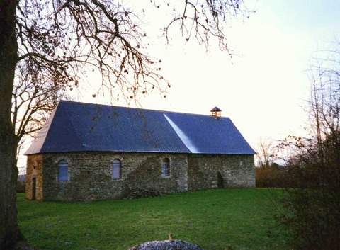 La chapelle Saint – Quentin – d’Elle fait partie du hameau du même nom, situé à mi-distance et à quelques centaines de mètres entre la forêt domaniale de Cerisy, au nord-est, et la vallée de l’Elle, au sud-ouest. Cette église était la paroisse des Hûchiers de Saint-Quentin, colonie d’artisans installés par les ducs de Normandie dans ce territoire, jadis très boisé, afin de réaliser le mobilier des églises et demeures de la région. En 1762, l’église est agrandie ; le maître d’œuvre, Louis Le Petit, en est, alors, le curé. Rattachée à la commune de Bérigny le 27 septembre 1812, l’ancienne paroisse de Saint-Quentin sert de chapelle domestique aux habitants du château du lieu de 1847 à 1972. Depuis 1944, les dégradations s’accumulaient et, en 1970, la toiture achève de s’effondrer. Couvert d’une végétation sauvage, l’édifice est acquis, ainsi que le petit cimetière circonvoisin , en 1990, par M. et Mme Hugues Levard qui contribuent à sa restauration avec l’Association des amis de la chapelle de Saint – Quentin – d’Elle. Longue de 20,95 m, large de 5,75m, cette chapelle comprend deux parties situées dans l’axe l’une de l’autre : une partie d’époque médiévale et une partie datant des extensions du XVIIIe s. Tournée vers l’ouest, la partie du XIe s. est en schiste, de facture irrégulière et maçonnée à la terre. Le portail d’entrée, en calcaire, de construction plus récente, s’ouvre sur la façade ouest. Le mur sud est percé de deux ouvertures : une fenêtre ogivale taillée également dans des pierres calcaires et une porte basse latérale dont un des montants est gravé de trois croix. Le chœur, à l’est, est du XVIIIe s. Il est séparé de la partie occidentale par un mur de refend (contrebuté au sud par un contrefort). De facture soignée, l’abside à trois pans est éclairée de six baies dont les assises régulières sont alternativement en schiste et en calcaire. Une porte basse conduisait à une sacristie. Le sol à deux niveaux séparés par une marche de calcaire est pavé d’ardoise et de carrelage. La chapelle Saint – Quentin – d’Elie a bénéficié en 1994 d’une aide de 25 000 F de la Sauvegarde de l’Art Français. Grâce à cette première participation, la charpente et la couverture de la moitié du bâtiment ont pu être réalisées. Pour la fin des travaux de couverture, la Sauvegarde de l’Art Français a accordé en 1995 une subvention de 30 000 F.