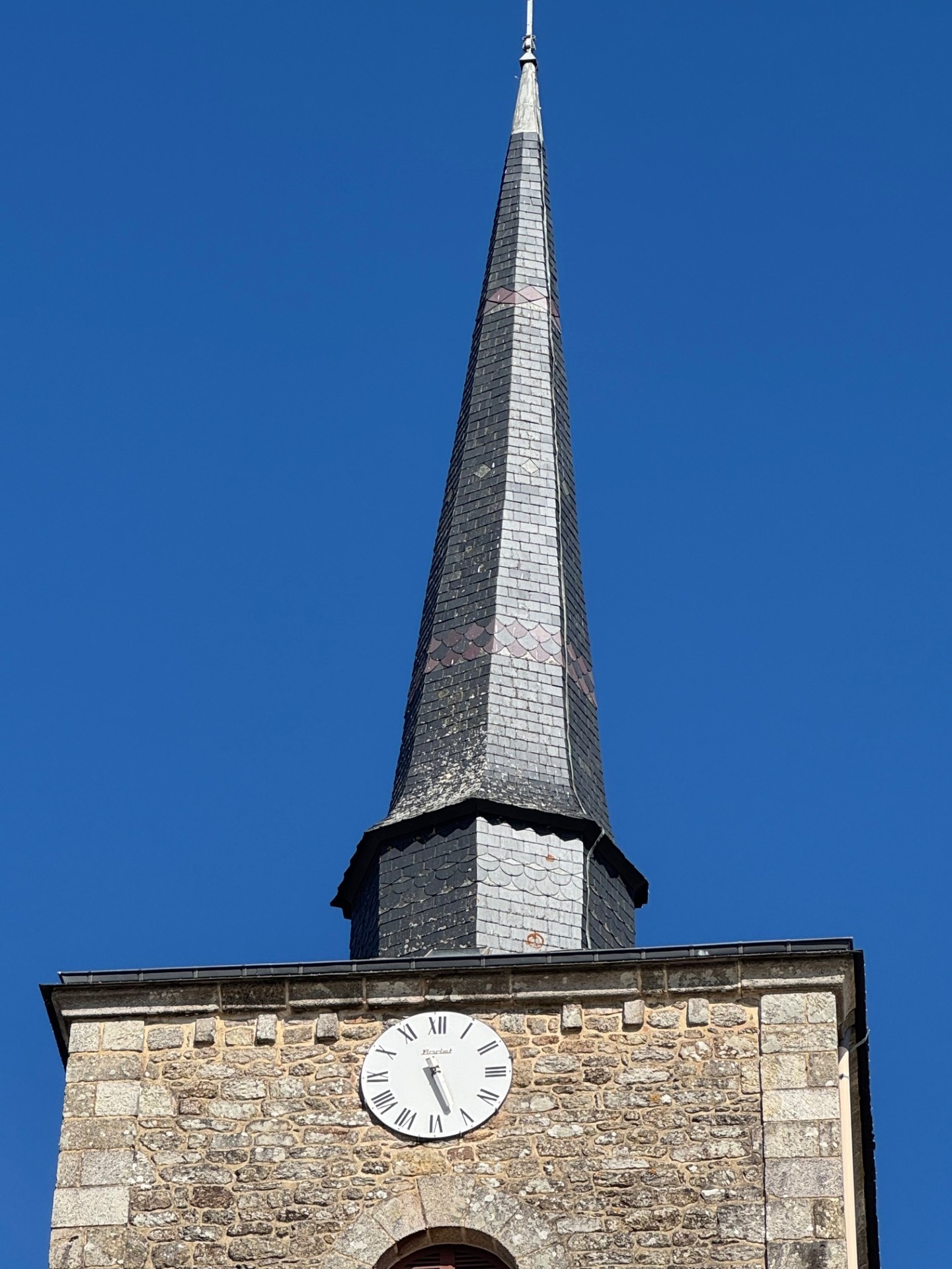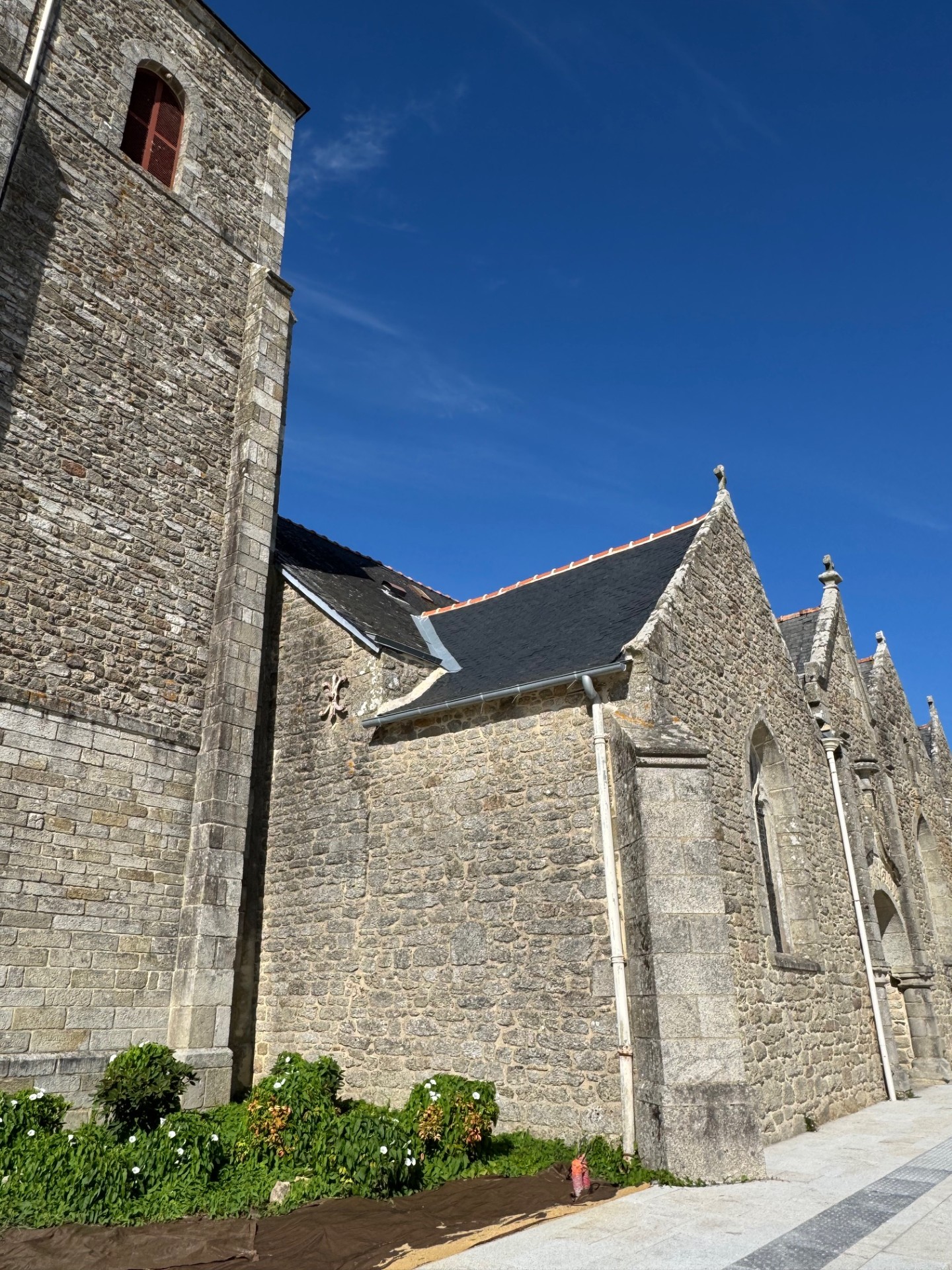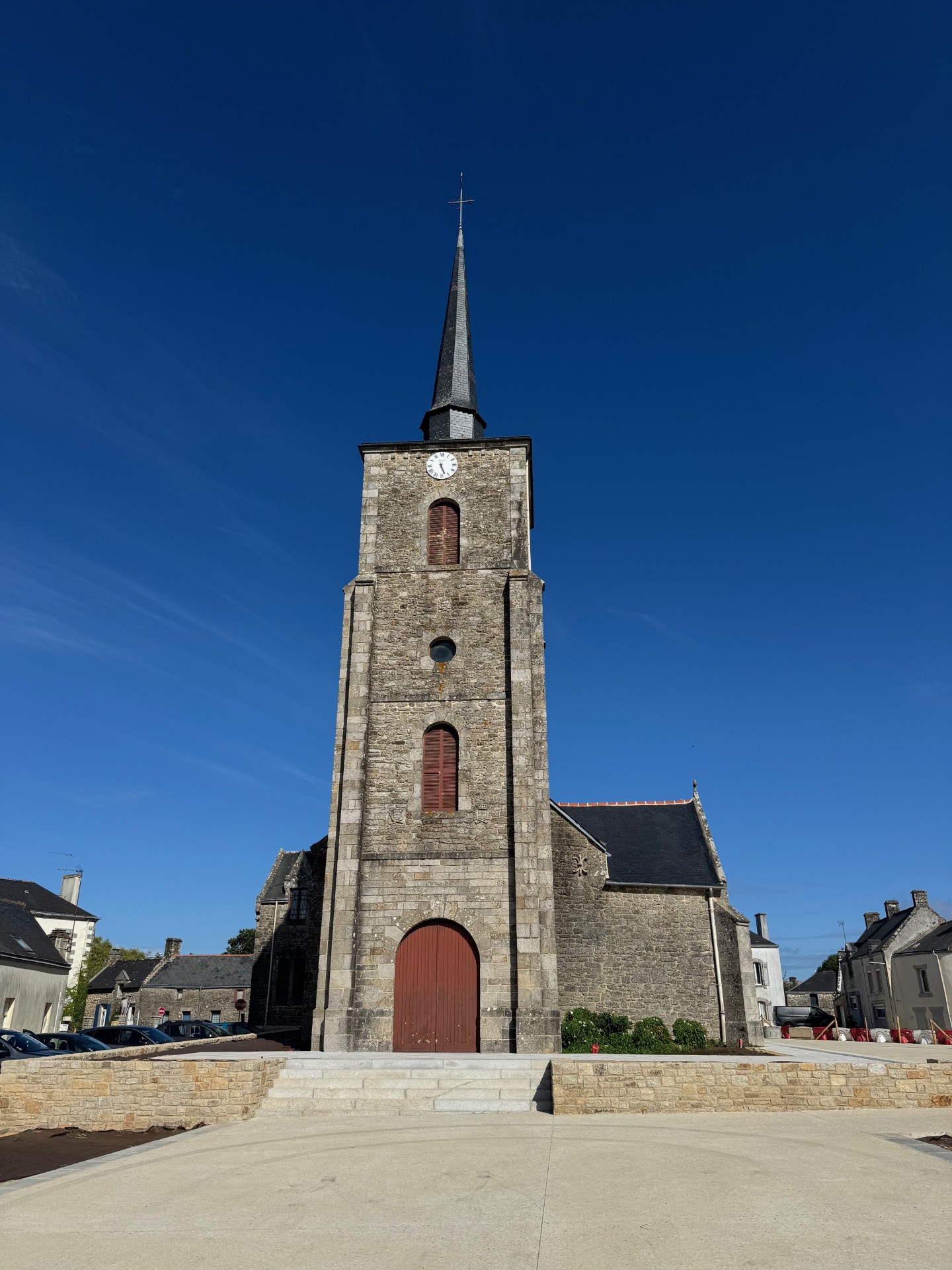 Le clocher actuel a été construit avec les restes de la chapelle Saint Marc, située au lieu-dit Cohignac à Berric, détruite en 1925. Quelques pierres gravées aux armes de la famille de Carné qui avait fait construire cette chapelle sont insérées dans les murs du clocher, soulignant ainsi l’origine des pierres.