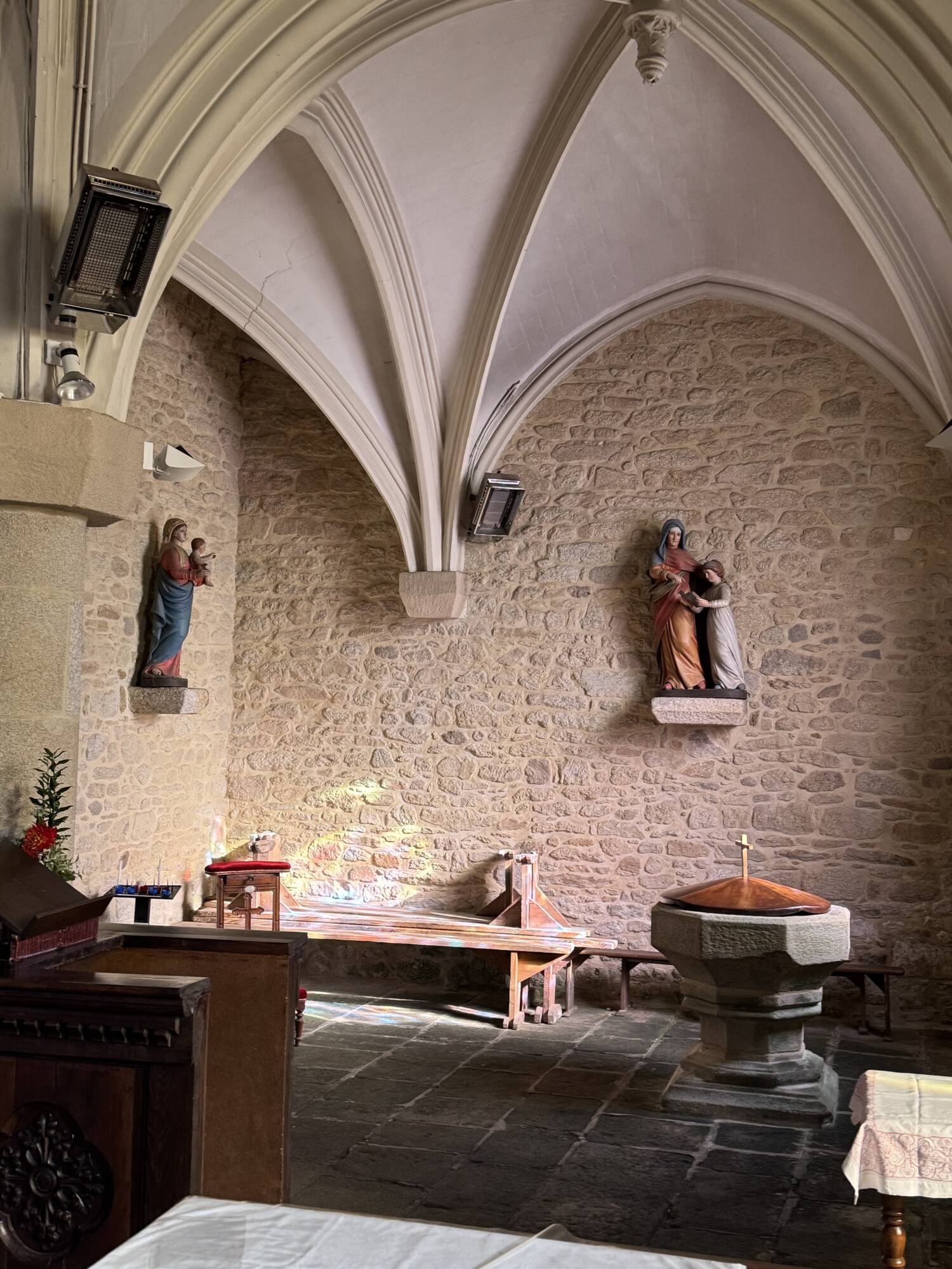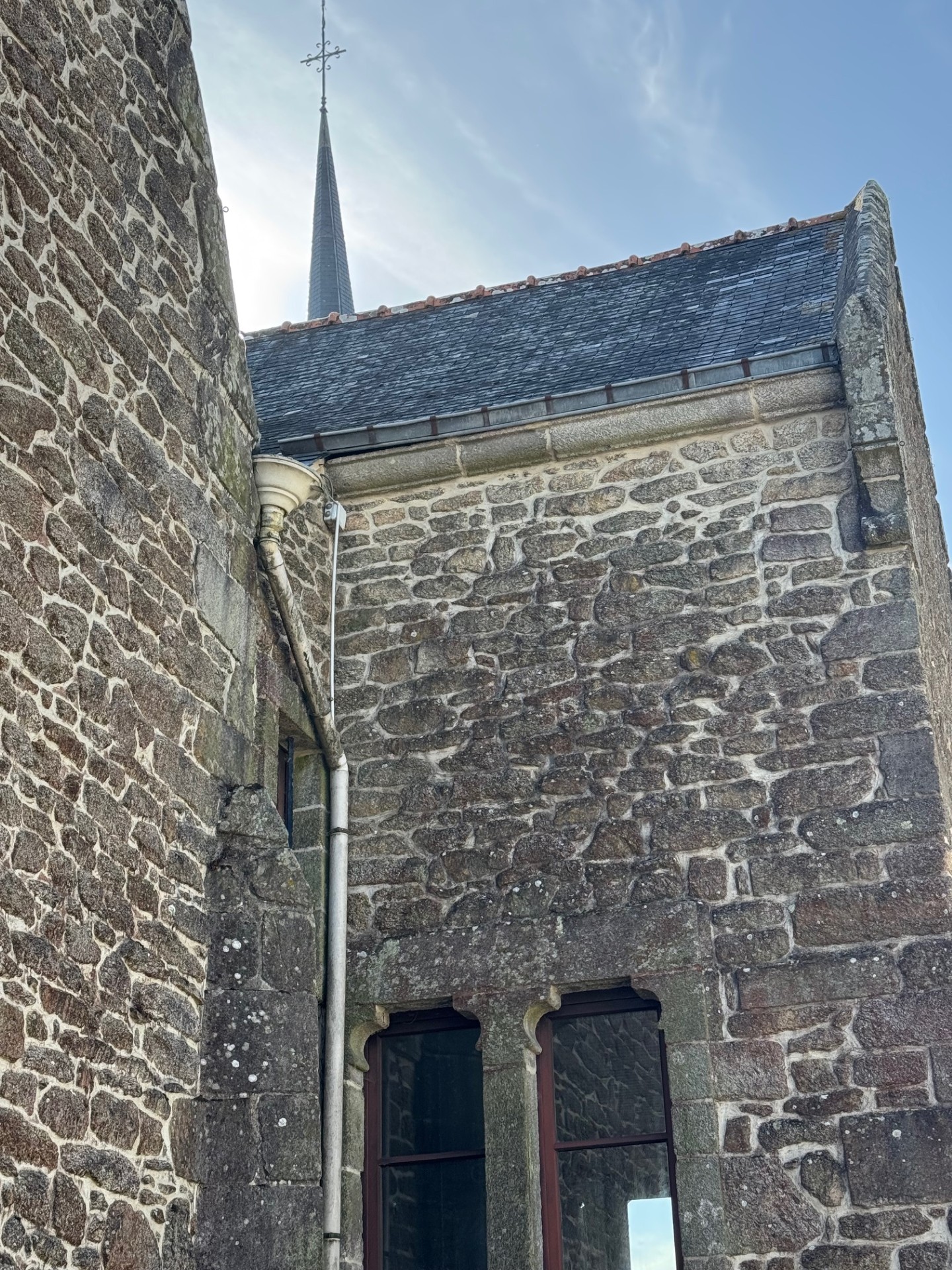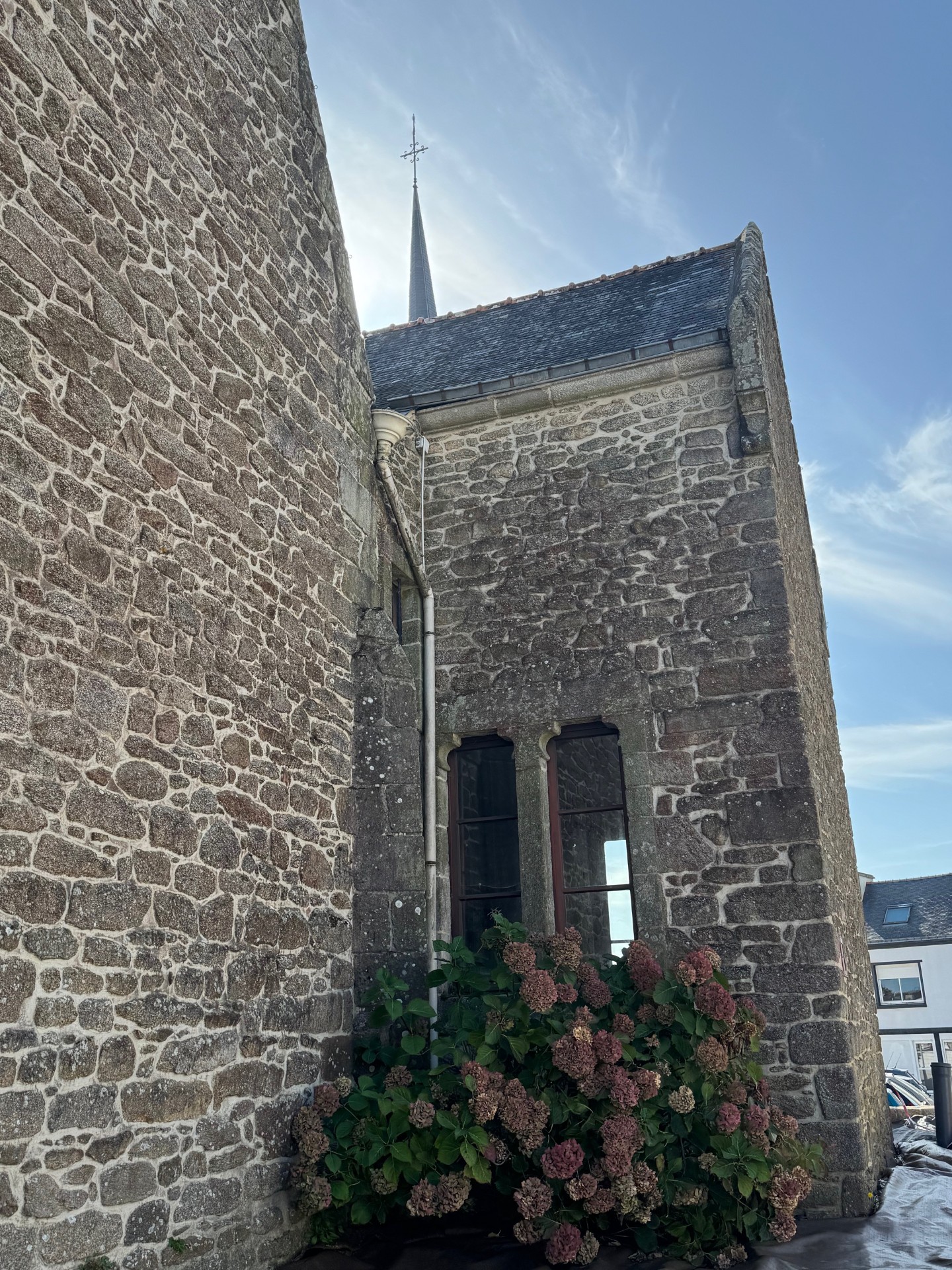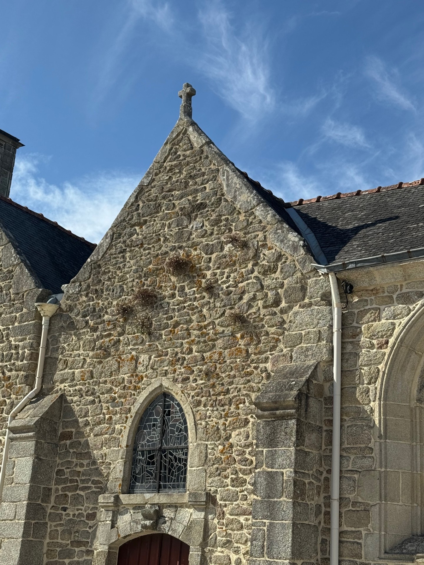 Le clocher actuel a été construit avec les restes de la chapelle Saint Marc, située au lieu-dit Cohignac à Berric, détruite en 1925. Quelques pierres gravées aux armes de la famille de Carné qui avait fait construire cette chapelle sont insérées dans les murs du clocher, soulignant ainsi l’origine des pierres.