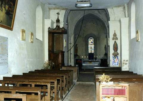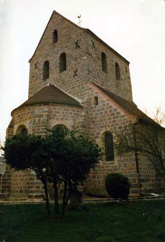Eglise Saint-Martin de Besny. Besny et Loisy, maintenant réunies, formaient jusqu’à la Révolution deux paroisses distinctes. Saint Martin était l’église paroissiale de Besny, placée sous le patronage de l’abbaye bénédictine laonnaise de Saint-Vincent. Elle faisait partie de l’ancien diocèse de Laon. Entourée de l’ancien cimetière, l’église se dresse au centre du village sur un petit tertre qui la met bien en valeur. Elle se remarque par l’originalité du matériau utilisé pour sa construction : un moyen appareil de grès, lié par un mortier très apparent. D’origine romane, elle a subi plusieurs modifications, mais elle a conservé une grande partie de sa structure ancienne et s’apparente au style de plusieurs églises du Laonnois : Chivy, Presles et Trucy. Elle comporte actuellement une courte nef unique, suivie d’une travée sous clocher accostée de deux chapelles latérales formant un faux transept, et se termine par un chevet en hémicycle éclairé par trois fenêtres plein cintre. L’église pourrait dater de la fin du XIe s., comme le suggère sa structure: nef plafonnée à murs inarticulés, faux transept avec clocher central et trois sanctuaires semi-circulaires plutôt exigus, sans doute tous voûtés en cul-de-four initialement. Le sobre clocher sur lequel tout l’édifice semble s’appuyer existe depuis l’origine, mais il a dû être consolidé et peut-être en partie tronqué au cours de restaurations, car plusieurs rapports anciens signalaient son mauvais état. La nef de trois travées avait des bas-côtés dont l’existence est attestée par la présence des grandes arcades en arc légèrement brisé visibles sur le mur nord, ainsi que par la trace, sur le mur occidental des deux chapelles, de l’arc de communication avec les collatéraux. La façade occidentale ainsi que le mur méridional ont été refaits au cours des différentes campagnes de consolidation qui ont eu lieu aux XVIIIe et XIXe s. et on entre maintenant dans l’église par une simple porte percée dans le mur sud. Les fenêtres qui éclairent la nef ont toute s été modifiées. Les parties orientales, mieux préservées, sont peu développées. Le chœur central est réduit à un simple hémicycle, alors que dans les églises analogues du Laonnois l’abside est précédée d’ une travée droite. Les deux chapelles latérales semi-circulaires sont voûtées en cul-de-four ; mais ces absidioles ont été englobées, sans doute lors d’une restauration, à l’extérieur dans un mur plat aligné sur le clocher. Ces petits sanctuaires sont éclairés par des fenêtres plein cintre qui ne semblent pas d’origine. La croisée élancée s’ouvre sur la nef et les chapelles par des arcades brisées à double rouleau ; ornées d’une simple imposte, les quatre piles rectangulaires, qui soutiennent le clocher central, plaident pour une datation précoce, mais le voûtement est plus tardif. Les ogives bombées, formées de deux tores encadrant un méplat, reposent sur des chapiteaux surmontés d’un épais tailloir mouluré et garnis de larges feuilles plates parfois légèrement recourbées, éléments que l’on peut situer dans la deuxième partie du XIIe siècle. L’abside est maintenant voûtée sur croisées d’ogives qui, bien qu’un peu différentes, appartiennent à la même période : ce sont des tores épais légèrement en amande. Les trois fenêtres plein cintre qui s’ouvrent dans le chœur existaient peut-être dès l’origine, mais elles ont été agrandies ultérieurement. L’église abrite encore dans l’angle nord-est de la nef de magnifiques fonts baptismaux du XIIe siècle. Pour la réfection de la couverture et des maçonneries, la Sauvegarde de l’Art français a accordé une subvention de 80 000 F en 1998.