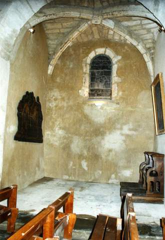 L’église paroissiale de Bessan a une histoire mouvementée. Chapelle castrale sous le duc de Berry (XVe s.), elle a une origine plus ancienne puisqu’elle figure, dès 940, sous le vocable de sainte Marie dans une donation faite par l’évêque et le chapitre de Béziers à l’ abbaye de Saint-Pons. Au siècle suivant, elle est l’objet d’un litige qui durera plus de cent ans entre les abbayes de La Chaise- Dieu et de Saint-Thibéry. Elle est alors connue sous le vocable qui est encore le sien aujourd’hui : saint Pierre-aux -Liens. L’édifice est bâti sur plan rectangulaire (27 ,75 m de long sur 16,40 m de large), avec une nef de cinq travées. Les bas-côtés datent des XVIe et XVIIe s. La partie la plus ancienne et la plus remarquable de l’église est l’abside. Elle remonte au XIe s. Circulaire à l’ intérieur, elle est pentagonale à l’extérieur avec une arcature extérieure de colonnes engagées, coiffées de chapiteaux assez élégants qui reçoivent la retombée des arcs bandés sur chacun des cinq côtés. Cette abside est percée de trois fenêtres en plein centre. La voûte de la nef, trop lourde (en plâtre), menaçant de tom ber, elle sera remplacée par une voûte en bois. La toiture de la nef et des bas-côtés nécessitait une réparation urgente. C’est la raison pour laquelle la Sauvegarde de l’Art Français a cru devoir accorder une aide de 100 000 F en 1994.