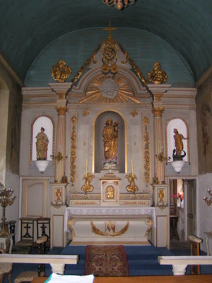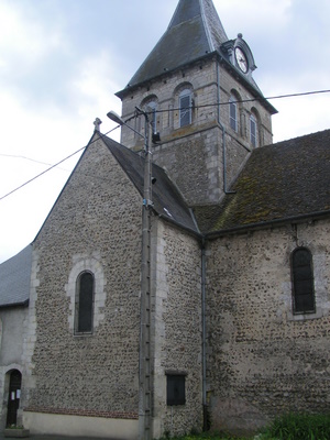 Un clocher s’élève à la croisée du chœur et des deux chapelles formant transept, sur un plan rectangulaire. Il est éclairé sur chacune de ses faces par deux baies jumelées, flanquées de colonnettes, cylindriques ou polygonales, avec chapiteaux à volutes. Une corniche décorée de billettes court sous la toiture. La tour et le clocher ont été repris au XIXe siècle : la tour repose sur quatre arcs portant sur quatre piles quadrangulaires à impostes moulurées, modernes. En partie haute, elle a été chaînée dans l’épaisseur des murs par des poutres horizontales. Le croisillon sud a été voûté au XVIe s. sur croisée d’ogives, mais la voûte plâtrée couvrant le croisillon nord a remplacé en 1752 la voûte qui s’était effondrée.