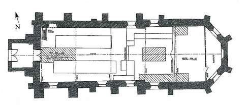 L’édifice a été agrandi au XVIe s. vers l’est, par l’adjonction d’un chœur de deux travées et d’un chevet polygonal, très légèrement plus large que la nef.