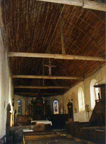 Comme le chœur, l’abside et le portail, la charpente date du XVIe siècle. L’intérieur de l’église est couverte d’un lambris, restauré, reposant sur des entraits anciens. À l’entrée du chœur, l’entrait supporte un Christ de Gloire.