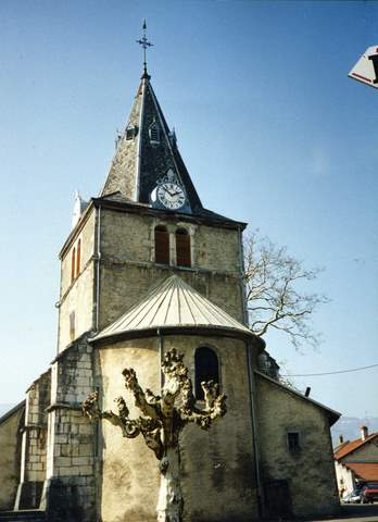 La nef voûtée en berceau précède une travée de chœur romane, audessus de laquelle s’élève le clocher, et une abside semi-circulaire. A l’extérieur, l’un des contreforts de la travée de chœur porte, gravée en chiffres gothiques, la date de 1523.