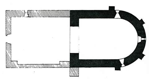 Le plan de l’église se compose d’une nef unique et d’un chevet plat et de trois chapelles au sud formant bas-côté. L’édifice, prolongé à l’est par une sacristie, est précédé d’un avant-porche «toscan» daté de 1850, qui abrite le portail du XVIIe s. sculpté, de grande qualité: l’ouverture en plein cintre est encadrée de deux colonnes corinthiennes gui supportent une architrave décorée d’oves et de denticules. L’encadrement est orné de chutes de fruits, de feuilles et de fleurs ; au sommet du tympan brisé a été placée une petite Pietà.