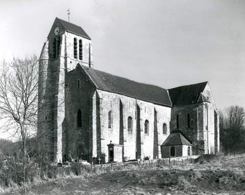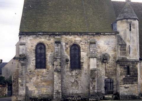Chœur et chapelle nord sont couverts sous un même toit à deux pentes dont le pignon oriental est percé de deux baies. Cette couverture unifie la construction. Sur le flanc nord, où des corbeaux scellés à mi-hauteur dans les deux premières travées sont sans doute des vestiges d’une construction adventice disparue, le toit repose sur une corniche moulurée d’un quart de rond sur des modillons en forme de masques. La chapelle sud terminée en hémicycle est moderne. Elle abrite une statue de Vierge à l’Enfant du XIVe s., inscrite à l’inventaire des Monuments historiques. Sur le flanc sud, une niche du XVe s. aux piédroits traités comme des contreforts et coiffée d’un dais en accolade devait abriter une statue, peut-être celle du patron de l’église, saint Denis. Il ne reste presque rien des peintures murales signalées par Woillez. Deux statues en bois polychrome du XVe s. ont été découvertes dans les combles au cours de leur restauration. Il s’agit de saint Antoine qu’on peut identifier au petit cochon à ses pieds, et d’un pape coiffé de la tiare à triple couronne. La disparition de ses attributs empêche d’être sûr de son identité, saint Pierre étant la plus probable.