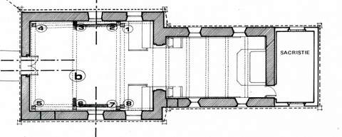 L’édifice comprend trois parties distinctes, dans le prolongement les unes des autres. La nef, de plan rectangulaire, est surmontée d’un petit clocher couvert d’ardoises qui devait contraster avec la couverture de tuiles, utilisée à l’origine pour la nef et le chœur. Le chœur, plus étroit et moins élevé, a conservé ses ouvertures anciennes et constitue peut-être la partie la mieux préservée de l’édifice. Au sud, deux portes, actuellement murées, tranchent par leur encadrement de pierres sur les murs de moellons de grès et de silex. La sacristie, située derrière le chœur, est un appendice postérieur dépourvu du moindre intérêt.