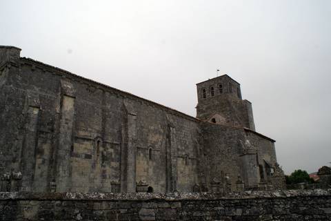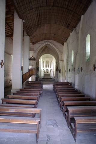 Ancienne possession de l’abbaye de Baignes, l’église fut rattachée à celle de Saint-Florent de Saumur à la fin du XIe siècle. Son plan, en forme de croix latine, comporte une nef allongée et étroite, flanquée au nord d’un bas-côté, une croisée de plan carré, précédant une travée de chœur et une abside hémicirculaire plus étroites. De part et d’autre de la croisée s’ouvrent une chapelle au nord, qui témoigne seule d’un transept disparu ou projeté, et une au sud, plus tardive, qui est flanquée d’une autre chapelle carrée. Si le chœur et l’abside sont datés du XIe s., l’église aurait été fortement remaniée au XIVe ou au XVe siècle. C’est ainsi que l’adjonction du collatéral nord pourrait remonter au XIVe s., tandis que sur l’emprise de la première travée de la nef était élevée une façade flamboyante, au portail trilobé. De la nef ancienne, il ne reste plus que l’amorce du mur nord primitif. Du XVe s. semblent dater également la voûte sur croisée d’ogives qui couvre la travée de chœur et celle de la croisée du transept. Les deux chapelles élevées au sud, que François Eygun désigne comme chapelles seigneuriales, pourraient avoir été construites à cette période. René Crozet notait comme significative la superposition de deux ordres d’architectures dans l’abside et dans le chœur, et soulignait la parenté des chapiteaux avec ceux de Saint-Thomas-de-Conac dont les tailloirs et les corbeilles sont décorés des mêmes motifs d’entrelacs ou de palmettes.