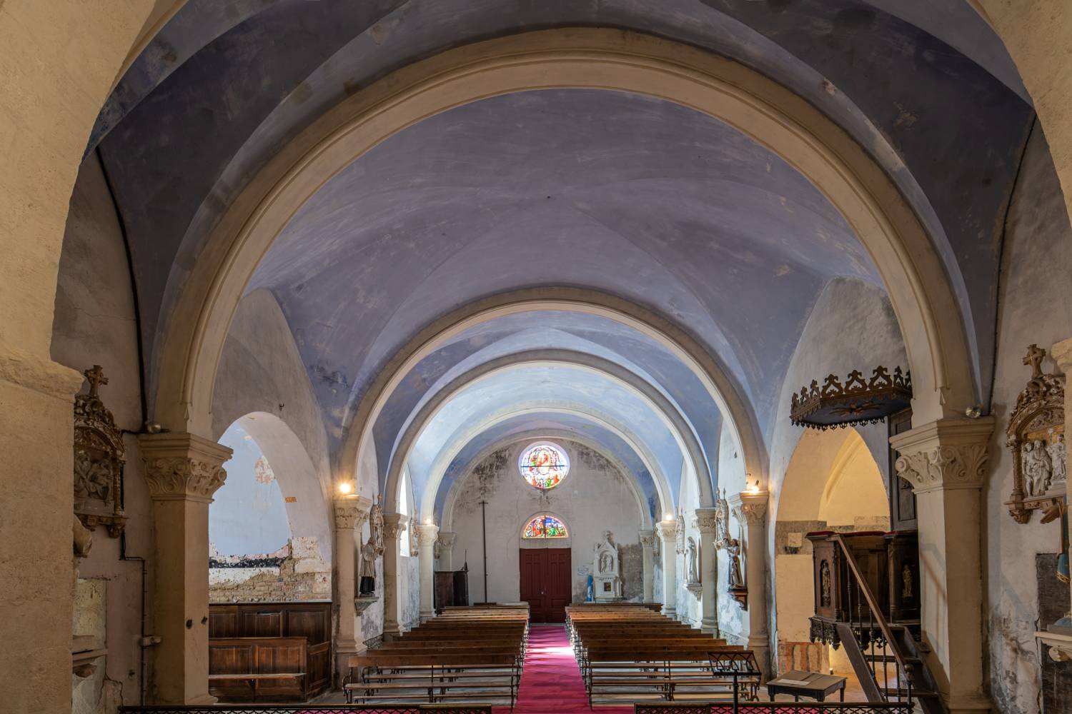 La nef comporte quatre travées couvertes de voûtes d’arêtes séparées par des arcs doubleaux. Le voûtement a remplacé en 1889 l’ancien plafond lambrissé du XVIIe. Dans le même temps, quatre lourds contreforts sont édifiés pour contrebuter la poussée des voûtes, et les deux baies nord et sud de la nef sont agrandies.