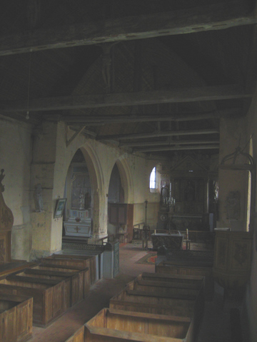 La nef unique est couverte de bardeaux dont on sait qu’ils ont été refaits en 1748 par le charpentier Allais. Pour une mise au goût contemporain, en 1752, le curé commande au serrurier de Blévy « la façon d’une grille » pour séparer l’abside du chœur. Une dizaine d’années plus tard, la chapelle de la Vierge est repeinte et dotée d’un nouveau mobilier dû au sculpteur Harmant de Dreux. Dans le même temps, ses verrières sont refaites.