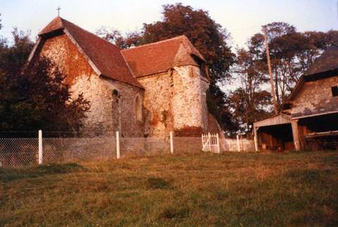 La chapelle Saint-Julien de Flainville est intimement liée à l’histoire du manoir de Flainville. Pour certains, elle fut fondée en 1323 par les religieux de l’abbaye de Fécamp sur la paroisse de SaintDenis-en-Val, pour d’autres elle le fut l’année suivante, en 1324, par le chevalier Estaut de Gruchet. Quoi qu’il en soit, elle est mentionnée en 1323 comme la « chapele en le honneur de Dieu et de saint Julien au manoir de Fléville en la paroisse de Saint-Denys-en-Val ». Son lien avec le manoir féodal, aujourd’hui disparu, est d’ailleurs corroboré par un certain nombre de vestiges architecturaux encore visibles, comme en particulier la tourelle hors œuvre formant clocher qui accole l’édifice sur son flanc sud : elle était vraisemblablement partie intégrante de l’ancien manoir. Si le service de la chapelle était assuré par les religieux de l’abbaye de Fécamp, le droit de patronage revenait au seigneur de Flainville. À partir de 1646, la chapelle dépendit encore plus étroitement de la paroisse de Saint-Denis-du-Val. La présence de litres seigneuriales sur ses murs témoigne du lien des fiefs de Saint-Denis-du-Val et de Flainville, à partir de la seconde moitié du XVIIe s., et de l’attachement pour cette chapelle des familles qui se sont succédé par filiation à la tête de ces seigneuries : les armes les plus anciennes relevées sont celles de Louis Voisin de Saint-Paul, reçu conseiller au Parlement de Normandie en 1663, de son gendre François Phélypeaux, marquis d’Outreville et du gendre de ce dernier, Louis-Charles-Antoine Gouffier, marquis d’Heilly. Cependant en dépit de son caractère privé et de la présence dans le bourg d’une église paroissiale qui fut même rebâtie à l’ extrême fin du XVIIIe s. par le comte de Choiseul-Gouffier, elle était utilisée par les parois siens. Enfin le rattachement de la commune à Bourg-Dun eut lieu par ordonnance royale du 4 décembre 1822. Le plan irrégulier de la chapelle s’explique par son histoire et par la déclivité du terrain. Il comprend trois parties qui, en dépit d’un appareil identique – silex retaillés, soigneusement disposés au-dessus d’un socle de grès et seulement interrompus par de la pierre pour les encadrements des portes et des baies – révèlent des aménagements successifs : un vaisseau unique orienté, de plan rectangulaire, flanqué d’une chapelle au sud, à l’angle sud-ouest de laquelle s’élève le clocher. Ces deux parties trahissent par leur volume et leur élévation une architecture originelle civile. D’ailleurs la disposition de l’appareil du mur sud corrobore pour l’œil attentif cette hypothèse : à la structure ancienne a été ajouté probablement au XIVe s. le vaisseau rectangulaire, destiné aux paroissiens, dont la grande baie à remplage rayonnant, percée dans le mur du chevet et malheureusement partiellement aveugle, constitue un élément notable du décor de l’édifice ; elle attire le regard par sa taille élevée et la qualité de ses moulurations, un haut triplet surmonté de trois roses qui témoignent d’une campagne ambitieuse. Cependant la déclivité du terrain, favorisant avec une humidité naturelle les infiltrations, a imposé la construction de deux contreforts au XIXe s. afin d’étayer l’angle sud-est du bâtiment particulièrement fragilisé. Du mobilier ancien il ne resterait malheureusement rien, bien que le Dictionnaire des Églises de France en 1968 signale la présence dans l’édifice d’une statuaire intéressante des XVe, XVIe et XVIIe s., notamment une chaire curiale du XVe s. et des fonts baptismaux en grès avec couvercle de bois du XVIIe siècle. En revanche, c’est à une campagne de travaux sommaires de mise hors d’eau effectuée en 1913 que l’on doit la sauvegarde partielle du décor peint qui couvre les murs et la voûte sur croisée d’ogives de la chapelle sud. La datation de l’ensemble paraît postérieure à la fondation de l’édifice, vers la fin du XIVe s. ou au début du XVe siècle. Les scènes de la vie de la Vierge sont représentées sur les murs : l’Adoration des mages au nord, l’Annonciation au sud, la Visitation à l’ouest et un sujet mal identifié à l’est. Des anges musiciens d’une grande grâce animent le décor des voûtains. Pour des travaux de maçonnerie, de charpente et de couverture, la Sauvegarde de l’Art français a accordé une subvention de 140 000 F en 1999.