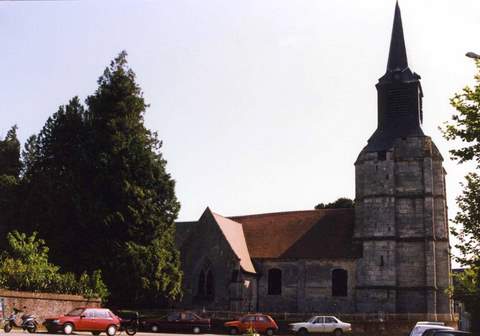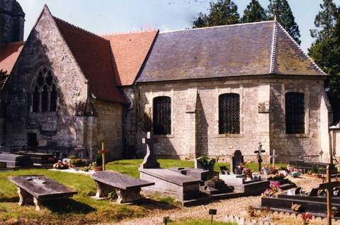 Le pignon occidental a été inclus au XVIème s. dans une tour de taille impressionnante pour une modeste paroisse de campagne qui aurait sans doute dû porter une flèche en pierre. L’actuelle pyramide en charpente couverte d’ardoises est une réalisation du XVIIIème s. De plan carré, la tour est également flanquée de grands contreforts saillants aux angles. Elle possède quatre niveaux de bandeaux moulurés. Sur la façade sud, une fenêtre étroite trilobée est un vestige du XVème s. Afin de préserver cet intéressant édifice, des travaux de consolidation des structures se sont avérés nécessaires. La Sauvegarde de l’Art Français a participé pour la somme de 100 000 F en 1992 à la réfection des maçonneries particulièrement dans les parties hautes du clocher. Pour restaurer le remplage flamboyant de la chapelle sud, la Sauvegarde de l’Art Français a donné 70 000 F en 1994.