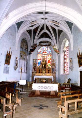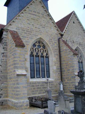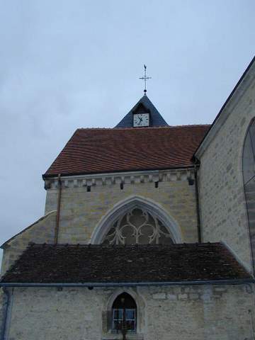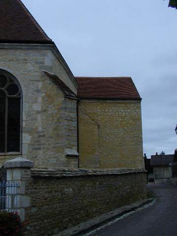 Église romane Saint-Vallier, située au centre du bourg, fait partie de ce groupe d’églises champenoises dont le transept et le chœur, à la charge des décimateurs, ont été reconstruits à la fin du XVe et au début du XVIe s., alors que les nefs, à la charge des paroissiens, ont été le plus souvent conservées faute de moyens. Son plan en croix se compose d’une courte et basse nef unique, d’un double transept et d’une abside à trois pans terminée par un chevet plat. Les doubles transepts et les chevets plats, qui ont connu un grand développement dans la région troyenne au XVIe s., sont l’une des caractéristiques de l’architecture religieuse de cette région et correspondent souvent à l’amorce d’une reconstruction de la nef, non poursuivie comme c’est le cas ici. Le côté sud du double transept est du XVIe siècle. Au XIXe s., le côté nord du transept a été construit ou reconstruit dans le style du XVIe, l’abside restaurée et les voûtes de la nef refaites en bois et plâtre. L’abside, de même hauteur que le transept, est épaulée par deux gros contreforts d’angle. Chaque pan est percé d’une fenêtre en plein cintre à réseau Renaissance appartenant à la seconde moitié du siècle. La fenêtre nord est aujourd’hui bouchée. Les façades latérales du double transept, séparées par un contrefort, présentent les caractéristiques que l’on rencontre dans la plupart des églises auboises à double transept, un pignon et une couverture indépendante par travée. La corniche à modillons simplement épannelés qui court sous la couverture des transepts est la seule décoration extérieure de l’édifice du XVIe siècle. Ce dispositif est fréquent dans les églises de la région ; on le rencontre à Pouan, Polisot ou Gélannes par exemple. Le bras sud du transept est éclairé au sud et à l’est par de larges fenêtres en arc brisé garnies d’un rem plage flamboyant. La différence de style des remplages des fenêtres du transept et du chœur laisse à penser que le transept est antérieur de quelques années au chœur dont les remplages des fenêtres sont franchement Renaissance. La croisée est surmontée d’un petit clocher carré terminé par une pyramide. Le sommet des murs goutterots de la nef romane est orné d’une corniche à modillons sculptés dont certains représentent des têtes caricaturales sans doute réemployées. L’édifice est couvert d’une voûte d’ogives du XIXe s. qui retombe par pénétration sur les piles engagées ; le restaurateur a su assez bien harmoniser les moulures modernes avec celles des piles des transepts. Ces six piles à noyau cylindrique, courtes et trapues, reposent sur des bases à moulures arrondies séparées par des gorges, cavets, scoties. Les voûtes y pénètrent directement, sans l’intermédiaire de chapiteaux. Le chœur est voûté d’un réseau complexe d’ogives à liernes et tiercerons en étoile qui reposent sur des culots. Les clés de voûte sont dépourvues de sculpture. Cet ensemble a été agrémenté au XIXe s. d’un décor peint d’angelots et d’inscriptions entourées de couronnes de laurier. Les fragments de vitraux Renaissance, classés Monuments historiques en 1913, remontés dans les baies de l’édifice, sont les vestiges des verrière fin XVe – début XVIe s. détruites par un ouragan en 1865. Il s’agissait, en particulier, d’un vitrail de saint Nicolas donné en 1625 par le prêtre Nicolas Breiard et de quatre lancettes représentant le Christ, l’Éducation de la Vierge et sainte Marguerite. Quelques fragments de ce dernier vitrail ont été placés dans la baie d’axe en 1939. La baie de la sacristie a été garnie d’un saint Vallier céphalophore placé sous un dais d’architecture entre deux bordures de bouquets portant les monogrammes du Christ et de la Vierge, datant du XVe siècle. Le mauvais état de la charpente du chœur, modifiée au fil du temps par la suppression de pièces rigidifiant l’ensemble, a nécessité une restauration générale. La triangulation longitudinale a été reconstituée avec des croix de saint André, les fermes ont été redressées et les sablières, qui n’assuraient plus la répartition des charges, ont été replacées correctement. Les voûtains, les arcs doubleaux et les formerets ont également été restaurés. Pour ces importants travaux, la Sauvegarde de l’Art français a attribué une subvention de 100 000 F à la commune en 1999.