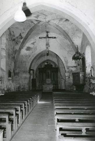 Orientée selon un axe nord-ouest sud-est, elle est bâtie sur un plan en croix latine, mais les deux bras du transept pourraient être de construction légèrement plus récente que le reste de l’édifice, de même que le clocher qui surmonte la croisée. La corniche de la nef est soutenue par des modillons simples, celle des autres parties de l’église par des modillons à écusson. Les combles sont surélevés et l’on pouvait y accéder par une porte – aujourd’hui murée – située à droite de l’arc triomphal. Le mur pignon du chœur est percé d’archères et la porte est défendue par une bretèche. Enfin, une meurtrière était ménagée à la base du clocher. L’ensemble du bâtiment est voûté sur croisées d’ogives. La sculpture des chapiteaux n’est pas dépourvue d’intérêt, non plus que le mobilier, notamment le maître-autel du début du xviiie s. La toiture en laves qui couvre la nef était entièrement à restaurer, de même que la charpente. Pour la mise hors d’eau de cet intéressant témoin du gothique bourguignon, la Sauvegarde de l’Art français a versé en 1987 une subvention de 70 000 F.