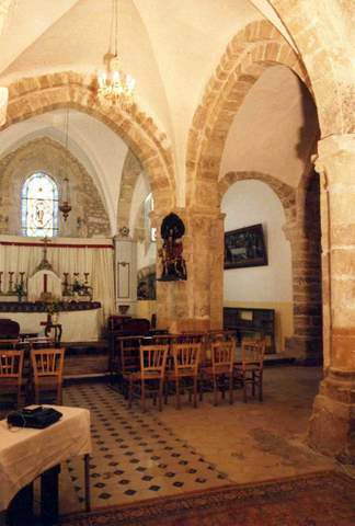 Sa longueur totale est de 31 m. Elle comporte une nef de trois travées, accompagnée d’un bas-côté au Nord, tous deux couverts d’un berceau brisé de plâtre. Le chœur comprend deux travées voûtées, l’une d’arêtes, l’autre sur croisées d’ogives. Il est accosté d’un bas-côté, au Nord et au Sud, tous deux voûtés sur croisées d’ogives. Le chevet est plat. Le clocher carré et massif est formé de trois étages : le premier est aveugle, le second est percé, sur chaque face, de deux baies à l’arc légèrement brisé et au troisième étage, ne s’ouvre, sur chaque face, qu’une seule baie romane. Il s’élève au-dessus de la première travée à droite du chœur. Les colonnes et les piliers à colonnettes qui supportent les voûtes sont ornés de chapiteaux à feuilles plates se terminant en crosses, datables de la fin du xiie s. À l’Ouest, le portail d’entrée, dont l’arc est légèrement surbaissé, a pour seul décor une mince colonnette qui se poursuit, autour de l’arc, sous forme de tore et deux culots sculptés de masques grotesques. Un auvent le protège ; il est soutenu par des colonnes dont les chapiteaux à feuilles plates, très frustes, pourraient provenir de l’église antérieure. Les fenêtres sont modestes ; étroites et de formes variées : en plein cintre, en tiers point, oculi et même rectangulaires à la sacristie. L’église abrite un important mobilier : retable du maître-autel orné de beaux lambris de la fin du xviie s., autel secondaire avec son retable du xviiie s. et un ensemble de statues rustiques du xvie s. (Vierge, saint Jean, sainte Anne, saint Martin, sainte Barbe). Des fragments de litre funéraire ont été dégagés dans une chapelle. Cette église a été inscrite à l’inventaire supplémentaire des Monuments historiques le 2 août 1946. La Sauvegarde de l’Art français a accordé, en 1985, 20 000 F pour la réfection des toitures de la nef et du chœur.