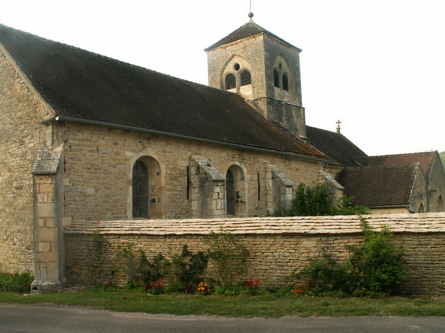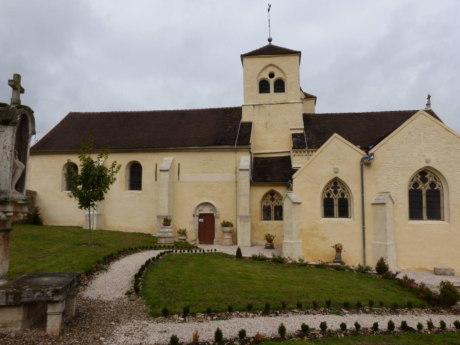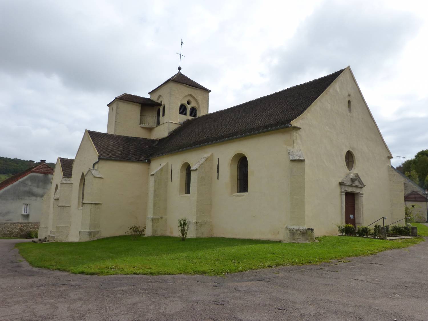 L’origine de l’église remonterait à la fin du Xe–début du XIe s., car elle est citée en 1013, dans une charte de donation par Humbert de Salmaise à l’abbaye Saint-Bénigne de Dijon. L’édifice actuel résulte de nombreuses modifications et ajouts apportés à sa construction, du XIVe au XVIIIe siècle. Ainsi en est-il pour la chapelle Saint-Jean-l’Évangéliste, fondée par Jean Valon, châtelain du village proche de Salmaise, en 1447, pour le chœur en 1573, pour la chapelle Saint-Claude en 1578, pour la nef, et probablement le clocher et la sacristie dans l’angle sud-est du chœur, en 1689. Des travaux portant sur l’ensemble de l’église, sont demandés par les habitants à l’architecte Caristie en 1769, car « les murs gouterots quitteroient la voute au risque d’entrainer le reste de l’édifice ». Ils sont reportés, faute de moyens, en 1784 et seront repris en 1789, mais ne concerneront que le chœur et la travée supportant le clocher. Ces travaux, dont on ignore l’étendue, étant à la charge du seigneur du lieu, la famille Lacousse d’Arcelot (dont le blason figure sur un fragment de la litre funéraire au revers du mur occidental), et du curé décimateur, sont achevés en 1792. Le problème de la poussée des voûtes de la nef sera cependant résolu, à une période indéterminée, par la pose de tirants métalliques. D’autres travaux et réparations sont signalés en 1853, 1860 (mécanisme et cadran d’horloge) et au cours du XXe siècle.
