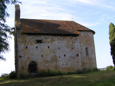 L’édifice, orienté, est formé d’un chœur arrondi et d’une nef saillante de plan rectangulaire. L’abside est percée d’une fenêtre d’axe et de deux fenêtres latérales situées un peu plus bas. Au nord-est, une porte a été bouchée, qui faisait communiquer le chœur avec une sacristie, détruite en 1970. Le mur sud de la nef, percé d’une porte en arc brisé, porte les traces d’une construction, sans doute un emban. Le mur ouest est plein ; il est coiffé du clocher à arcade portant une cloche. La partie haute a été reprise en 1970. Sur la partie basse, on relève des traces d’arrachement peu explicables (vestige d’une cheminée ?). L’élément le plus remarquable est la décoration de la fenêtre axiale ornée de belles rosettes d’apparence pré-romane et cernée d’une archivolte formée de billettes en damier reposant sur deux têtes d’animaux, dont celle d’un bovin.