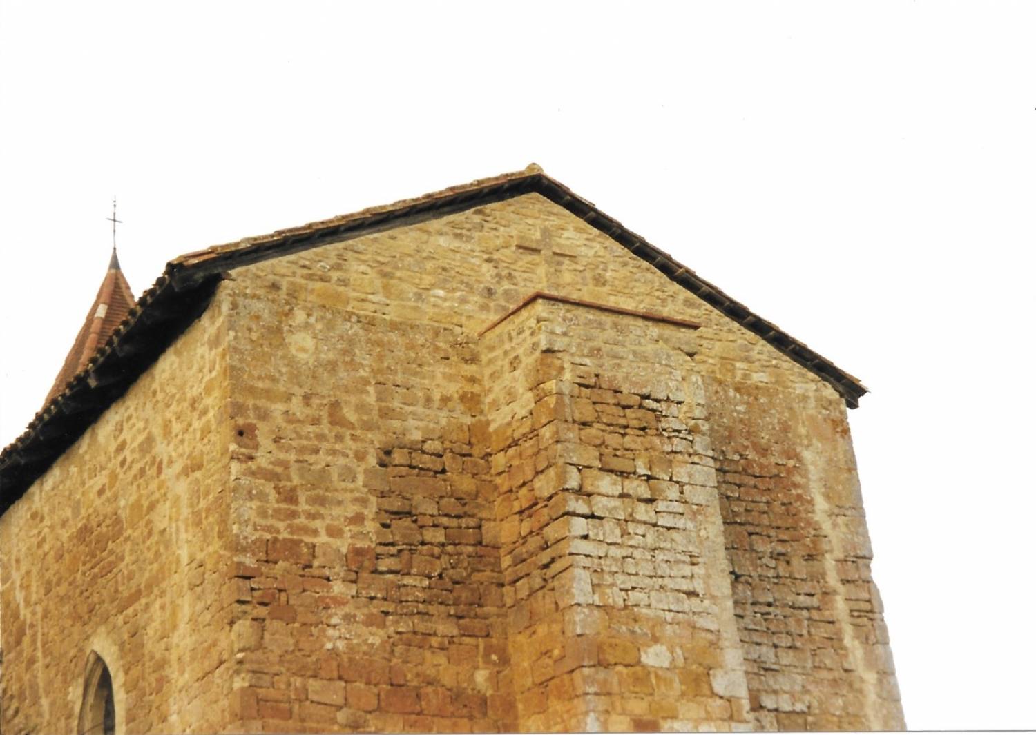 Son élévation surprend (11 m) ; sans doute parce qu’elle n’est pas contrebutée, on l’a flanquée d’ un énorme contrefort qui l’épaule en son milieu. Sous celui-ci on a retrouvé les fondations de l’ancienne abside semi-circulaire. Des arrachements dans le mur sont peut-être les restes d’anciens bâtiments adjacents disparus.