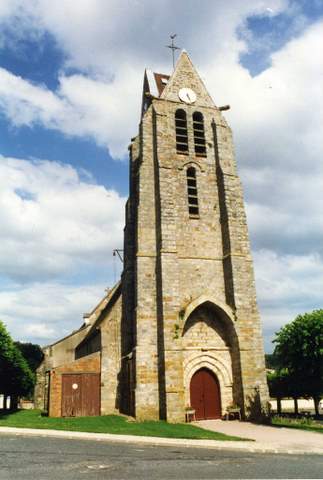 L’église, sous le vocable de la Nativité de la Vierge, est un édifice en forme de croix latine complété par une puissante tour-porche à l’ouest. L’ensemble paraît dater dans sa structure générale du XIIIe s., mais les restaurations menées en 1879-1880, grâce à la générosité des châtelains voisins de Plénoche, ne permettent pas de l’affirmer. La tour en bel appareil de grès, contrebutée par de gros contreforts, est percée dans sa partie supérieure sur les quatre faces de deux étages de baies surmontés d’un pignon. À l’ouest, un portail à trois voussures au profil brisé, surmonté d’un arc de décharge, donne accès à l’intérieur.