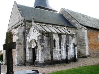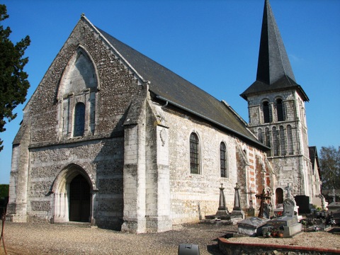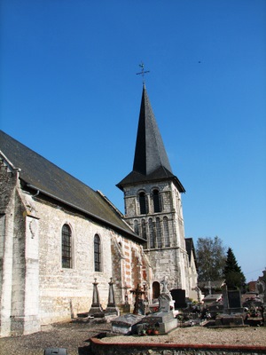 Un clocher à deux étages, daté du XIIe s., confère son élégance à cette église, tandis que le jeu de ses deux matériaux de construction rappelle par leur discrète polychromie que nous sommes en Normandie. L’église est encore entourée de son cimetière. Placée sous la titulature de la Vierge Marie, elle figure pour la première fois dans une donation faite en 1040 par Onfroy de Vieilles, seigneur de Pont-Audemer, à l’abbaye de Saint-Léger de Préaux où deux filles d’Onfroy avaient pris le voile. De l’église du XIe s. il ne reste qu’une partie du mur nord de la nef, le chœur et le clocher datent du XIIe s., la nef a été en partie reconstruite au XVIIe ou au XVIIIe siècle. Au XIXe s., le comte de Cossé-Brissac a participé à des travaux importants de restauration, au moment où il faisait construire une chapelle funéraire (1867).