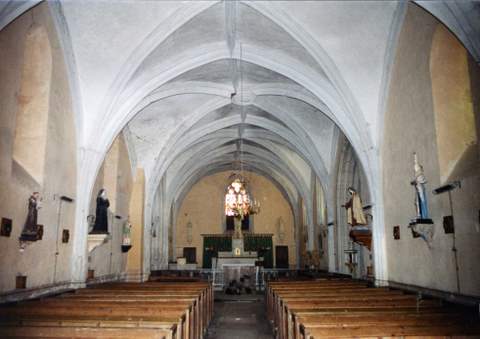Le chœur est éclairé de fenêtres gothiques à meneau vertical et remplage flamboyant, la nef de simples fenêtres en tiers-point. L’église conserve une belle piscine gothique dans le chœur et de remarquables fonts baptismaux du XVIème s. à l’entrée de la nef.