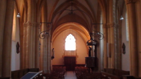 Dans le courant du XVe s., cette nef a été radicalement transformée par l’établissement de trois vaisseaux d’égale hauteur voûtés d’ogives. Le transept et l’abside polygonale remontent à la même époque, mais reposent peut-être sur des fondations plus anciennes. Malgré les restaurations postérieures, cette église flamboyante conserve une belle unité. À l’image des baies murées, placées derrière les retables, toutes les fenêtres étaient à l’origine divisées par un réseau dont la sinuosité si caractéristique du flamboyant restait encore timide. Des frises décorées de feuillages et d’animaux tiennent lieu de chapiteaux au sommet des piliers.