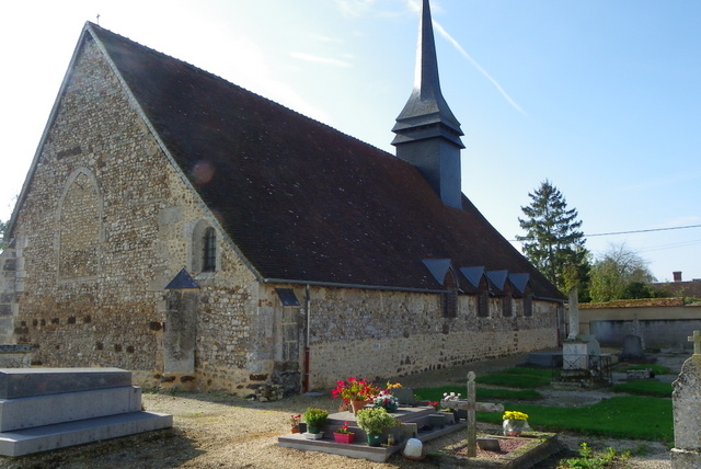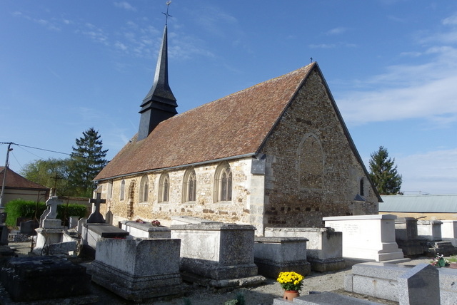 ÉGLISE NOTRE-DAME DE CRÉTON. L’actuelle commune de Buis-sur-Damville est née en 1972 de la fusion des trois communes de Boissy-sur-Damville, Créton et Morainville-sur-Damville. L’église Notre-Dame de Créton se dresse au milieu du cimetière et sa façade occidentale ouvre sur une rue du hameau. D’origine romane, elle dépendait du chapitre d’Évreux et a été presque totalement reconstruite au début du XVIe s., comme l’atteste l’inscription de 1512 gravée sur le mur sud du chœur. Elle forme un rectangle à chevet plat de 25 m sur 8 m auquel a été ajouté un bas-côté nord lors de la reconstruction. Elle est couverte d’une toiture asymétrique en tuiles plates, surmontée à l’ouest d’un clocher en charpente à base carrée couvert d’ardoises.