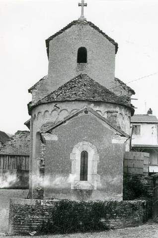 À l’extérieur, l’abside est ornée d’arcatures et a été renforcée par deux gros contreforts qui semblent plus récents. L’adjonction d’une sacristie en altère considérablement le charme. Le clocher, qui porte la marque de nombreuses reprises, est construit sur un plan carré avec une toiture en bâtière. Il est couvert de laves, tout comme l’abside et la travée droite du chœur. Ce sont ces laves qu’il convenait de reprendre pour assurer la mise hors d’eau de l’édifice. La Sauvegarde de l’Art français a versé à cet effet en 1987 à la commune de Burnand une subvention de 50 000 F.