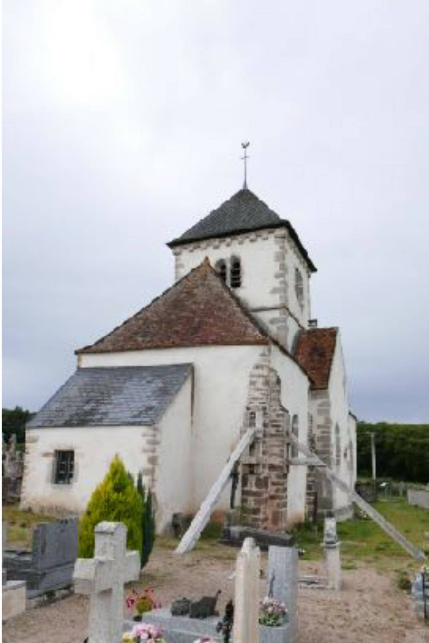 Située au hameau de Cordois, sans doute bâtie sur des vestiges gallo-romains, la première église a été détruite suite à des guerres et une vengeance de Louis XI. Les habitants ont reconstruit l’église au XVIème siècle, avec les pierres de l’église précédente. Une inscription sur un pilier fait état de la date de reconstruction : la première pierre a été posée le 11ème jour d’avril 1526. D’abord dédiée à saint Denis, elle est maintenant sous le vocable de saint Jean-Baptiste.